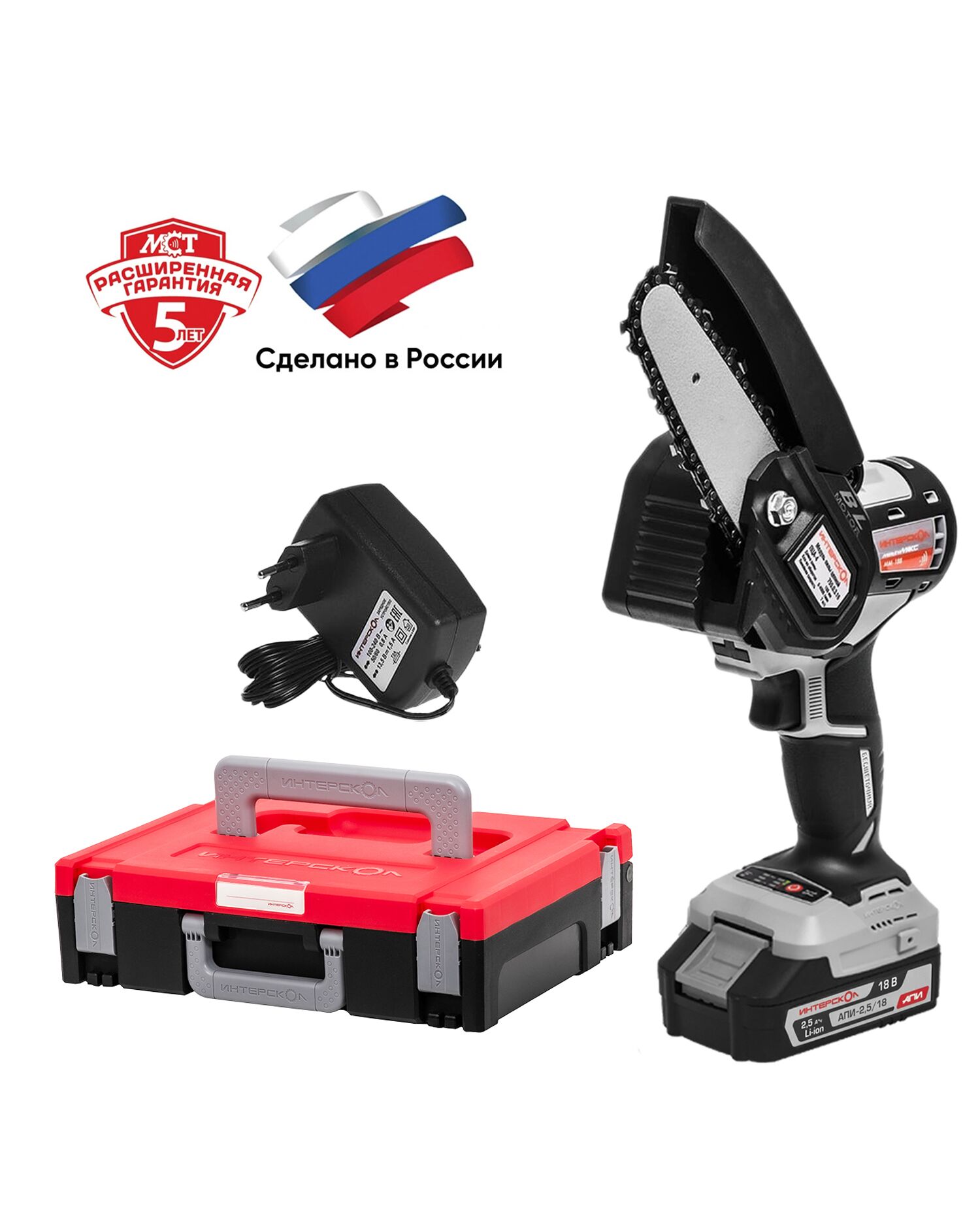 Аккумуляторная пила цепная ИНТЕРСКОЛ ПЦА-4/18ВМ МультиМАКС, 18 В, 10 см, c АКБ 2.5 Ач и ЗУ, в МультиБОКС-100 (755.1.3.47)