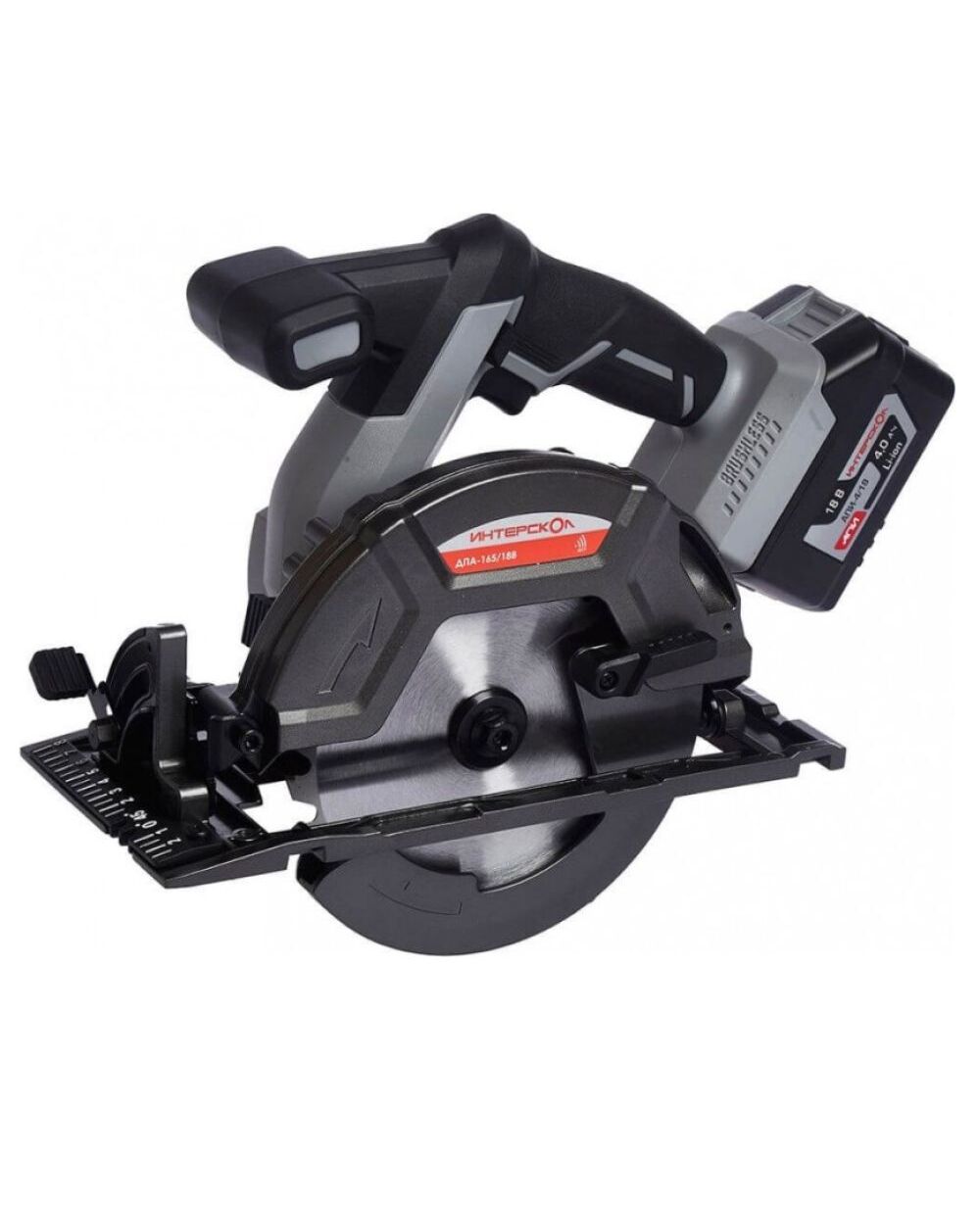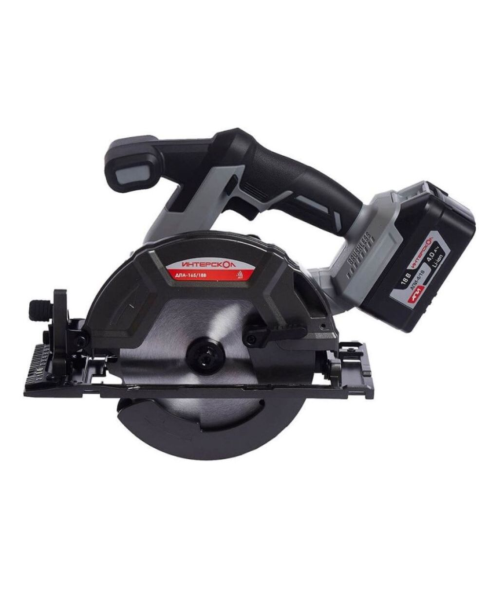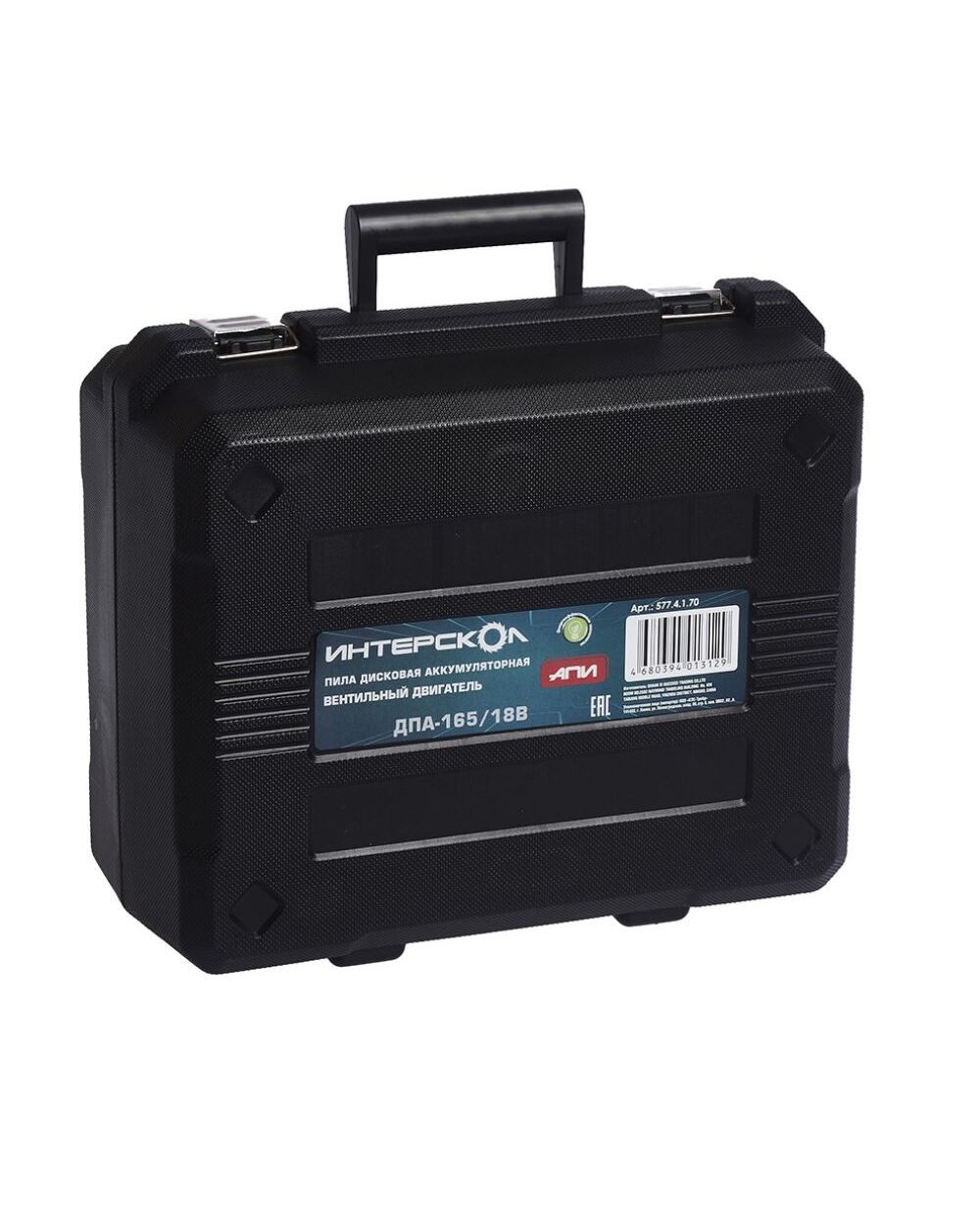 Аккумуляторная пила дисковая ИНТЕРСКОЛ ДПА-165/18В, правый бесщет двиг, Li-ion АПИ 18В, 5000 об/мин, (кейс, без аккум. и ЗУ)