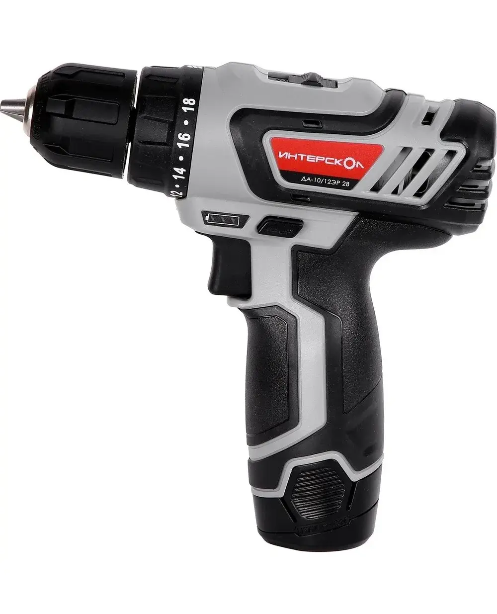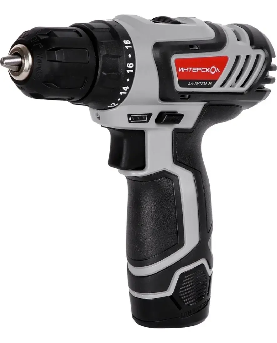 Аккумуляторный шуруповерт ИНТЕРСКОЛ ДА-10/12ЭР 28 ПРОМО 1*2А/ч, картон