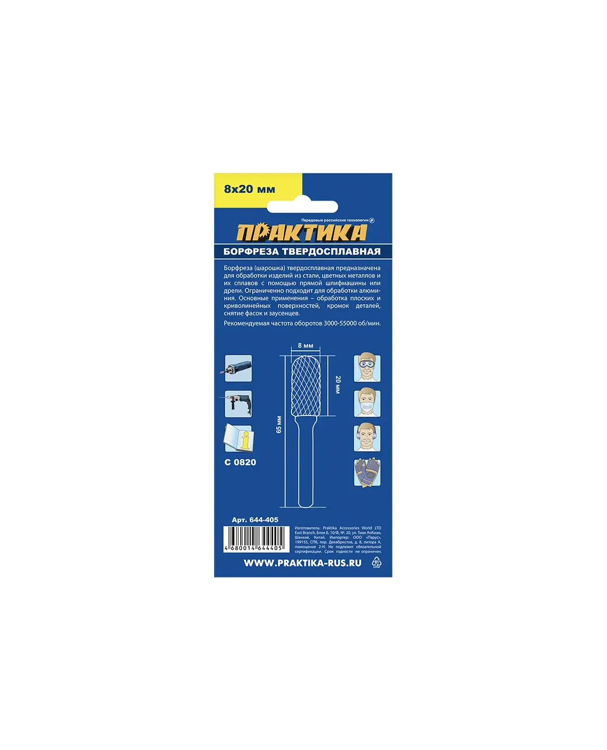 Борфреза ПРАКТИКА т/с, тип C, цилиндр.закругленная 8х20 имм хв.6 мм (644-405) предназначена для обработки изделий из стали, цветных металлов и их сплавов с помощью прямой шлифмашины или дрели. Ограниченно подходит для обработки алюминия.