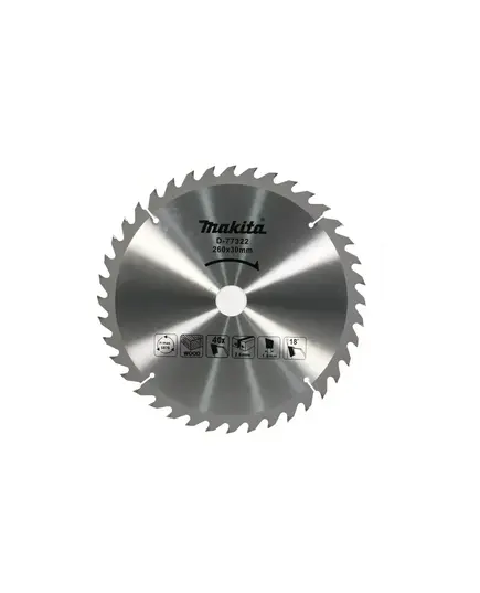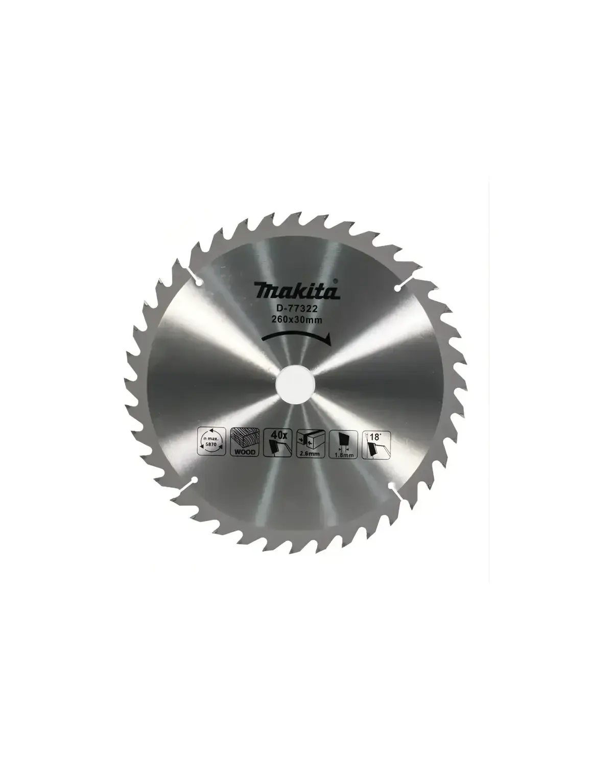Описание товара Диск пильный MAKITA 260х30х2.6/1.8x40T для дерева (D-77322)