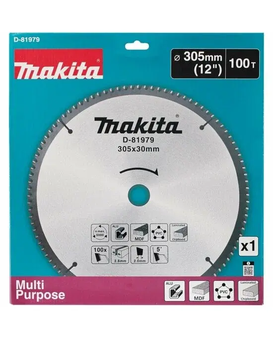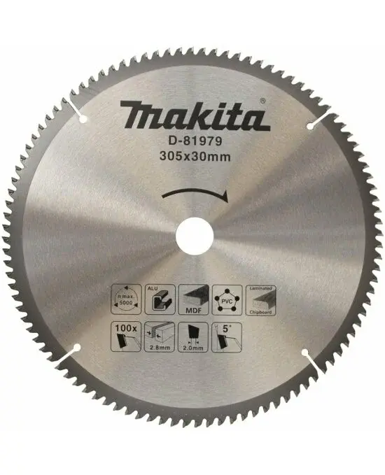 Диск пильный MAKITA 305x30x2.8/2x100T универсальный для алюминия/дерева/пластика (D-81979) диаметром 305 мм станет незаменимым помощником мастера, выполняя чистовые точные разрезы алюминия, дерева, пластика и композитных материалов. Оснащенный твердым сплавом и обладающий идеальной геометрией зуба, этот диск обеспечивает плавный ход и стабильную скорость реза, минимизирует риск появления сколов и трещин. Оснастка имеет оптимальное число зубьев 100 штук, что гарантирует чистую линию среза и аккуратную обработку кромки. Ширина пропила 2,8 мм. Универсальность диска позволит успешно справляться с любыми поставленными задачами, будь то работа с деревом, металлом или пластмассой.