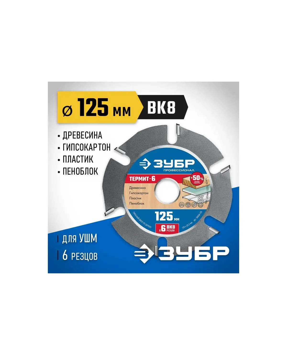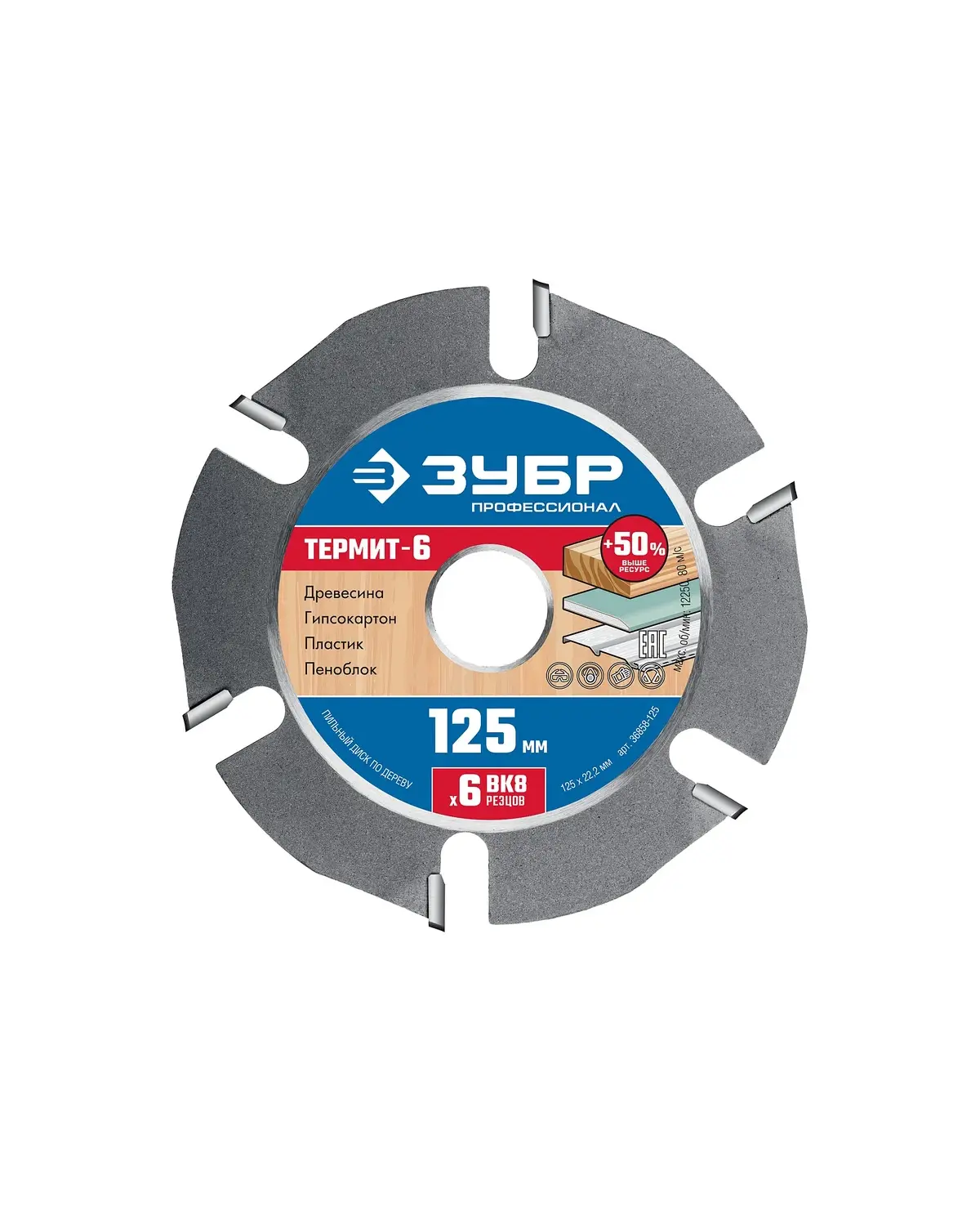 Диск пильный ЗУБР Термит-6 Профессионал, 25х22.2 мм z6 для УШМ, по дереву (36858-125)