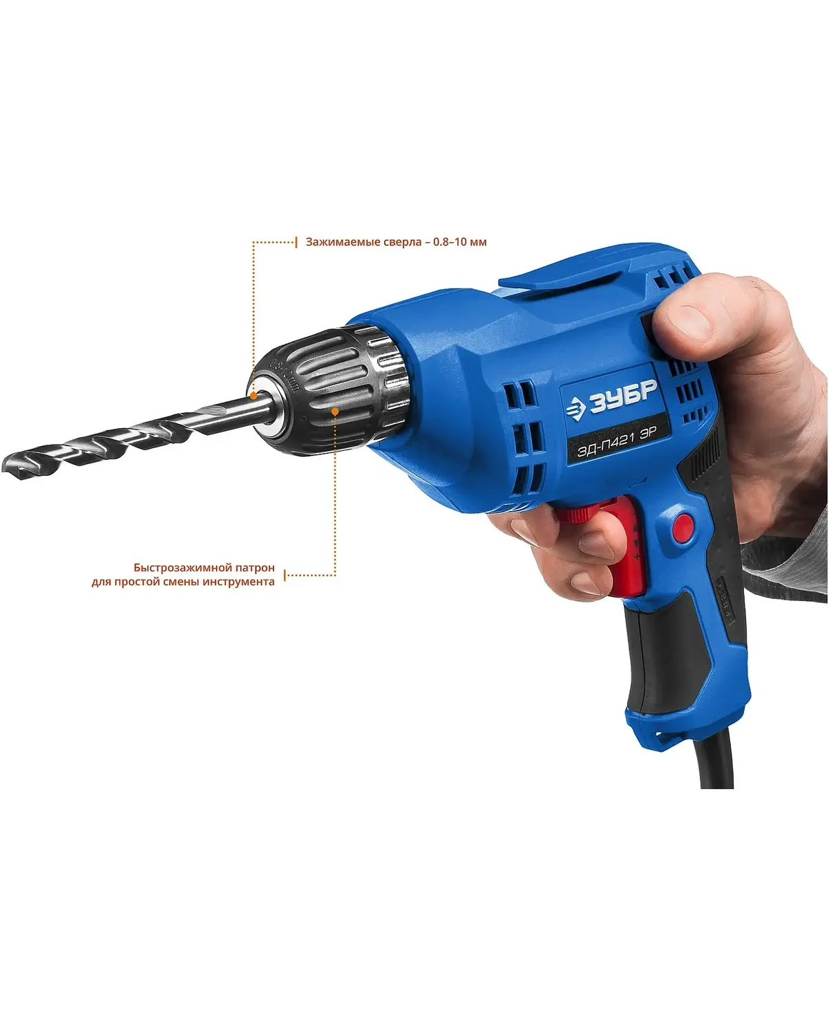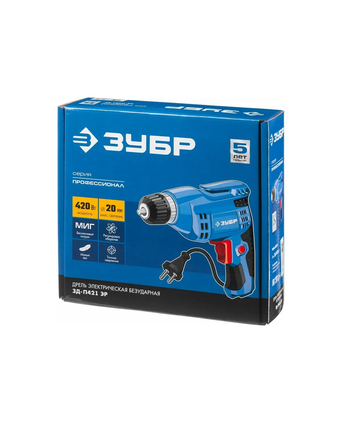 Дрель ЗУБР ЗД-П421 ЭР «ПРОФЕССИОНАЛ», 420 Вт, БЗП 10 мм, 0-3300 об/мин, 1.3 кг