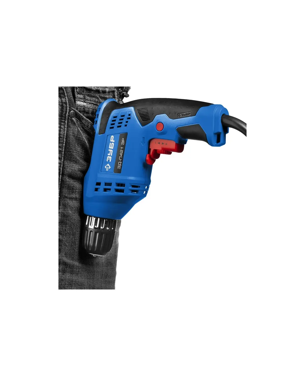 Дрель ЗУБР ЗД-П421 ЭР «ПРОФЕССИОНАЛ» применяется для точного сверления отверстий в различных материалах. Также имеется возможность заворачивания крепежных изделий при установке соответствующей оснастки. Быстрозажимной патрон позволяет легко и быстро менять аксессуары. Фиксация выключателя во включенном положении обеспечивает удобство при продолжительной работе. Предусмотрена регулировка оборотов от малых (для аккуратного засверливания) до высоких (для быстрого сверления). Прорезиненная рукоятка позволяет осуществлять надежный хват. Встроенная клипса служит для крепления инструмента на пояс.