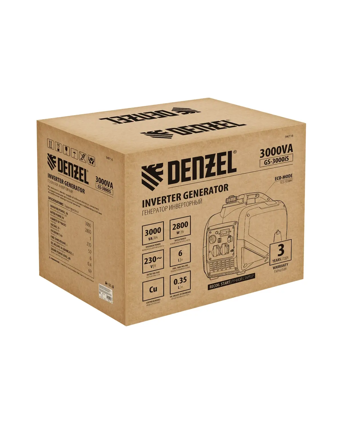 Электростанция бензиновая DENZEL GS-3000iS инверторная, 3.0 кВт, 230 В, закрытый корпус, ручной старт