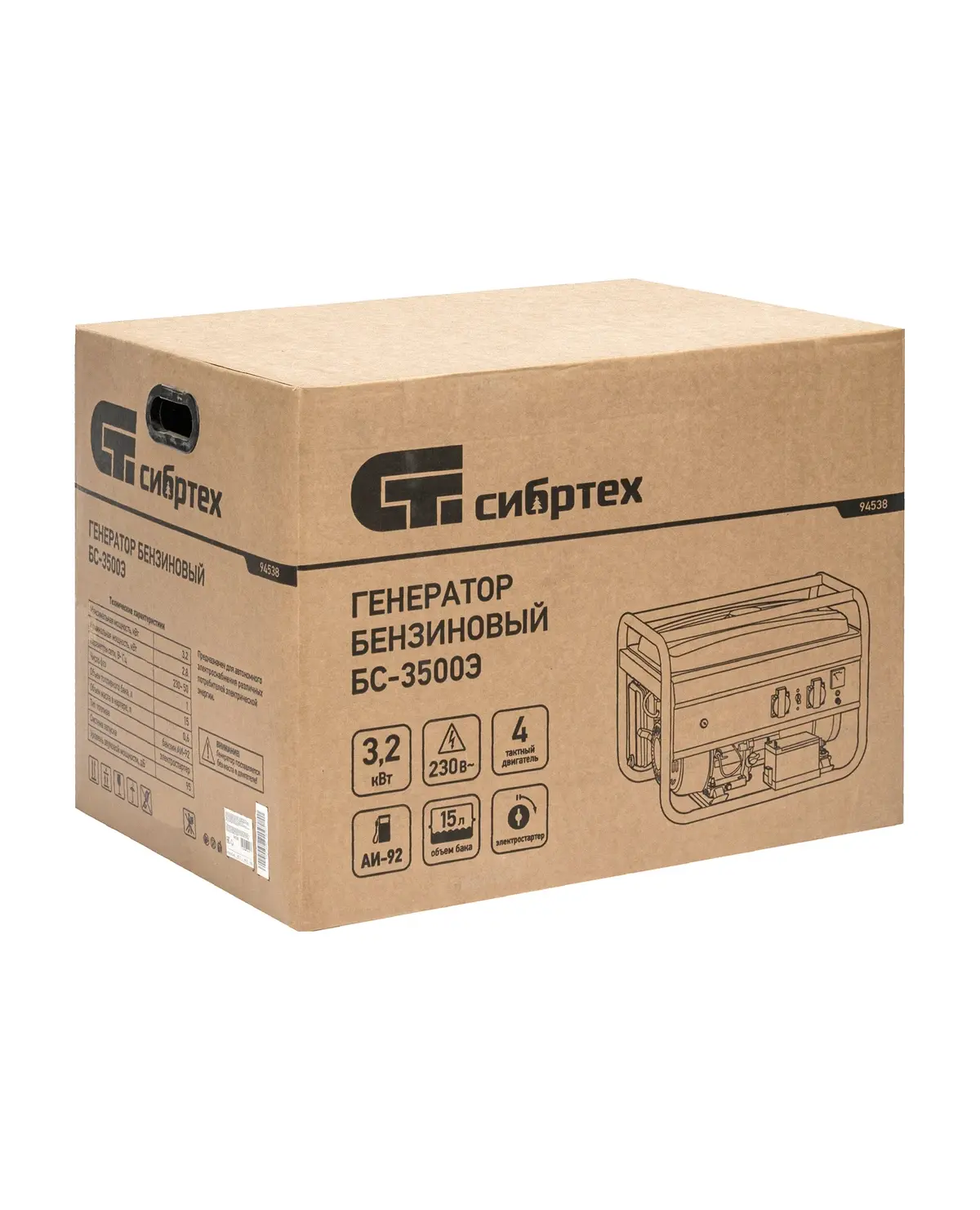 Электростанция бензиновая СИБРТЕХ БС-3500Э, 3.2 кВт, 230 В, 15 л, электростартер
