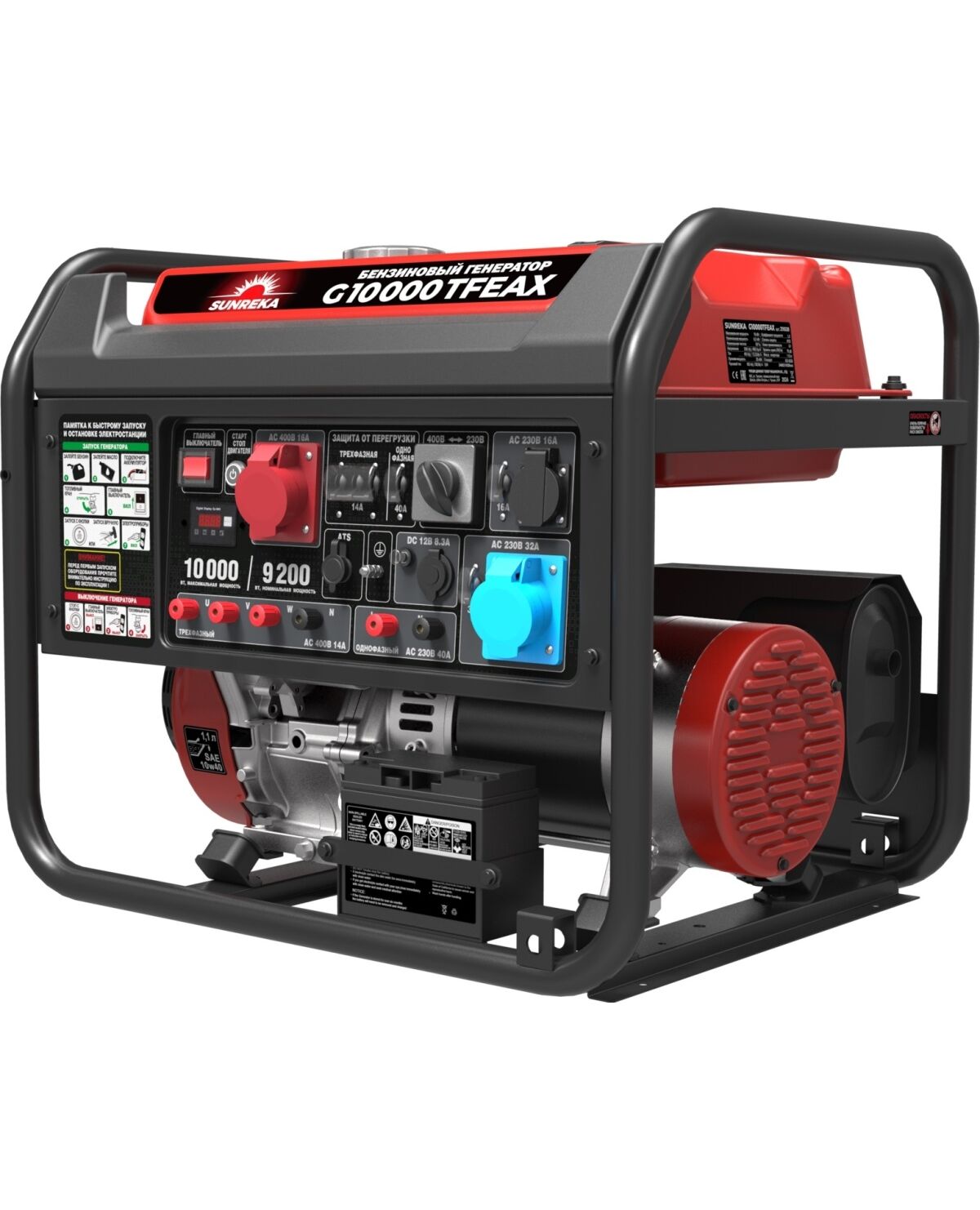 Электростанция бензиновая SUNREKA G10000TFEAX, 10 кВт, один.мощ. на 1-Ф и 3-Ф, электростартер