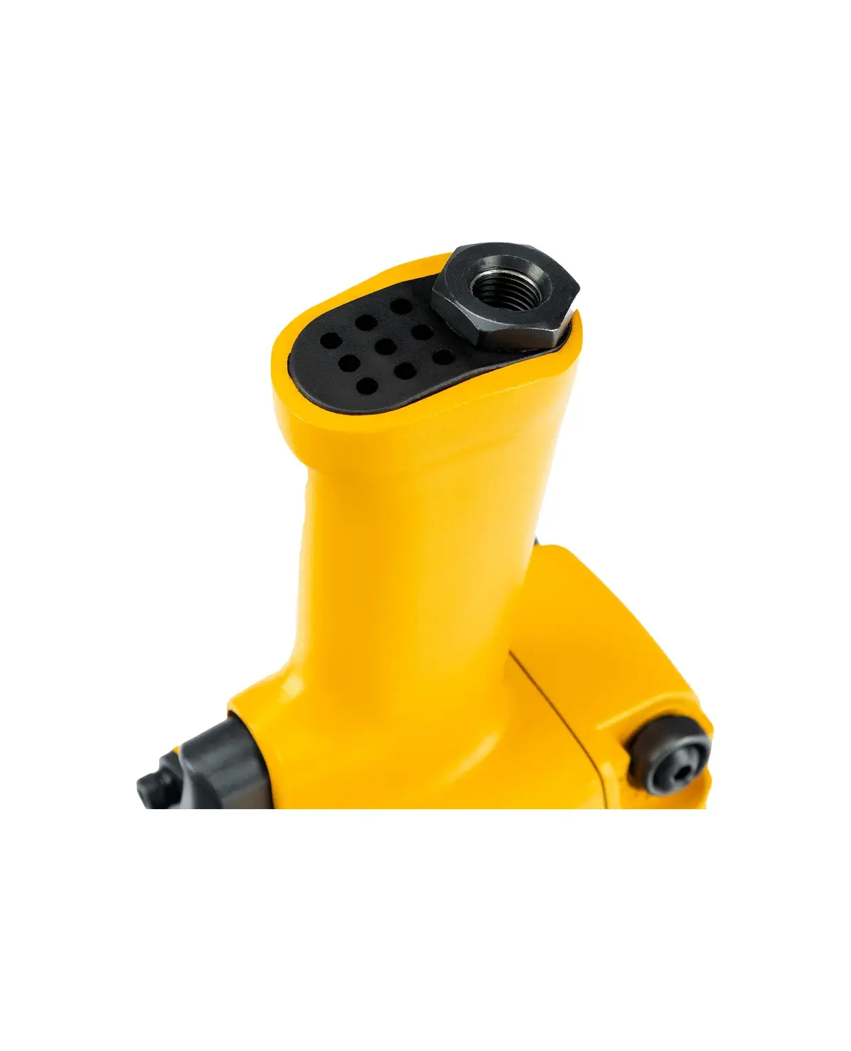 Гайковерт пневматический DENZEL IW860 + набор головок (57473) предназначен для работы при давлении 6,3 бар, расход воздуха в среднем не превышает 480 л/мин. 10 режимов (5 вперед + 5 назад) дают возможность проводить различные операции с крепежом, работать с левой резьбой и точно выбирать прикладываемое усилие. Пневмодвигатель может работать без перерывов, поэтому инструмент подходит для автомастерских и сборочных цехов. Ударный механизм Twin Hammer помогает справиться даже с заржавевшим крепежом и решить сложные задачи с высоконагруженной резьбой. Во время работы следует использовать специальное масло ISO 46, которое можно добавлять как напрямую в инструмент, так и с помощью блока подготовки воздуха Denzel 57469, включающего в себя лубрикатор для автоматической подачи масла. Ударопрочный корпус устойчив к механическим воздействиям. В комплектацию входят удобный кейс для переноски и набор из 8 головок.