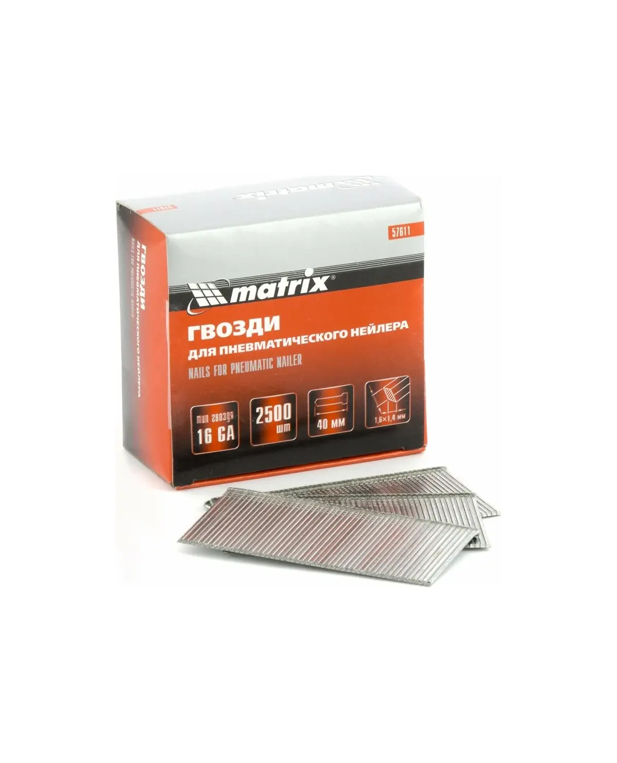 Гвозди MATRIX 16GA для пневматического нейлера, длина 40 мм, 2500 шт (57611)
