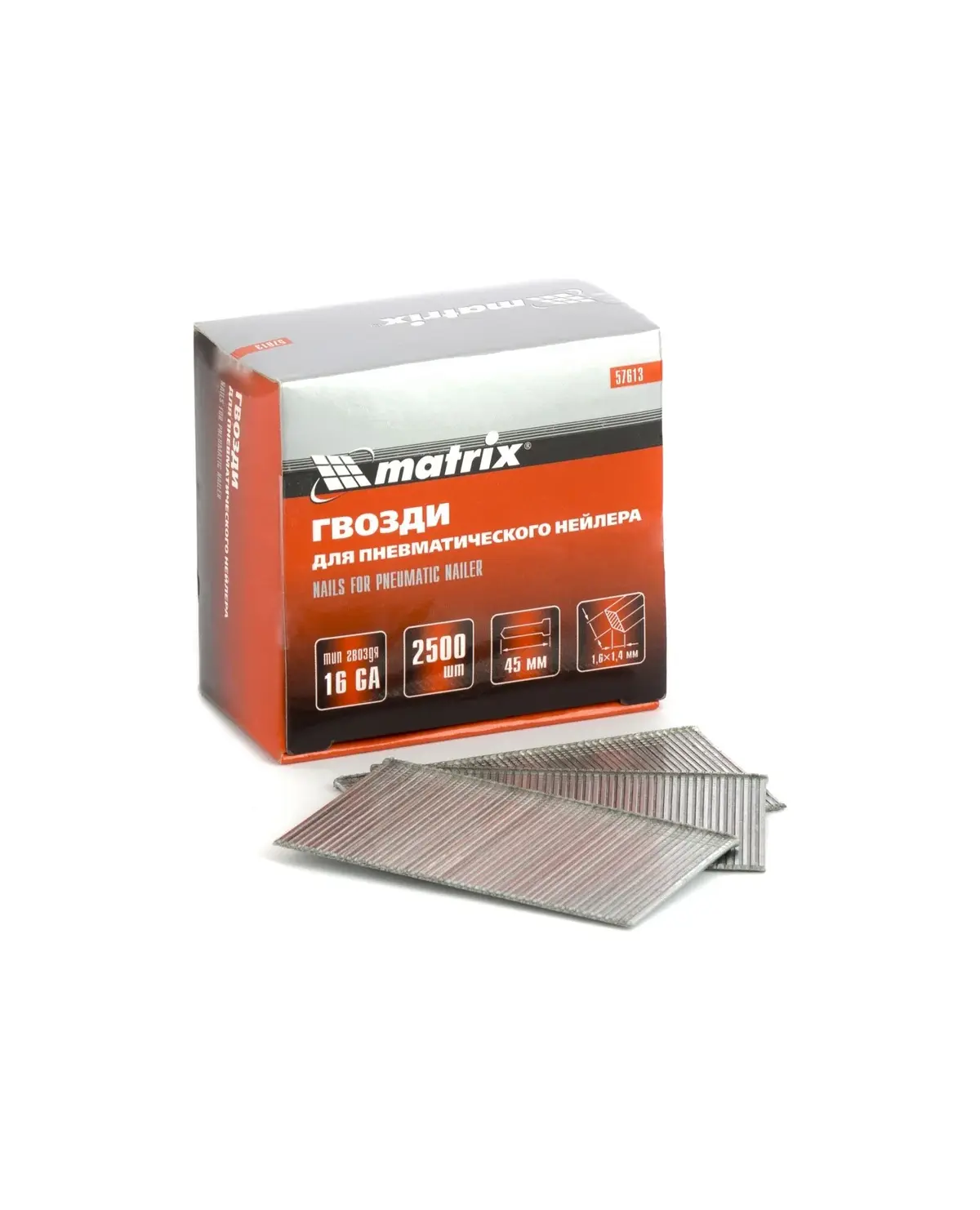 Гвозди MATRIX 16GA для пневматического нейлера, длина 45 мм, 2500 шт (57613)