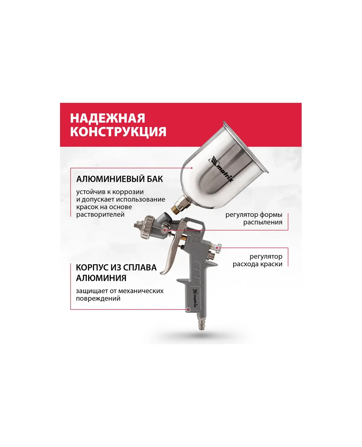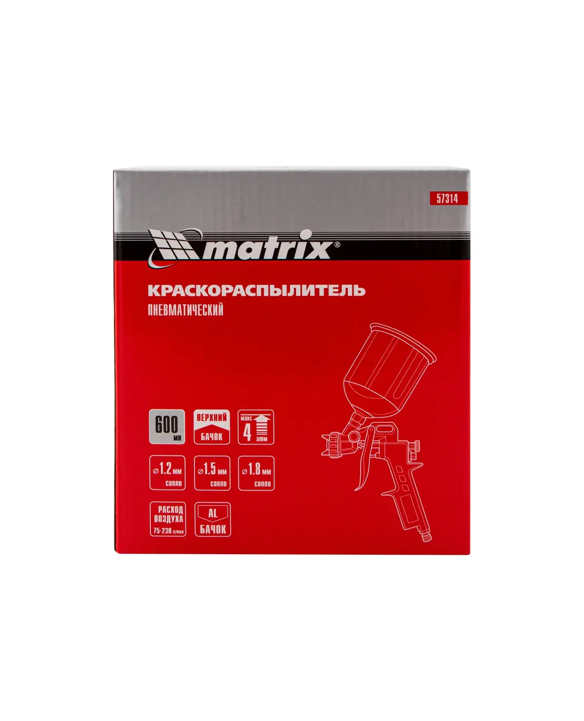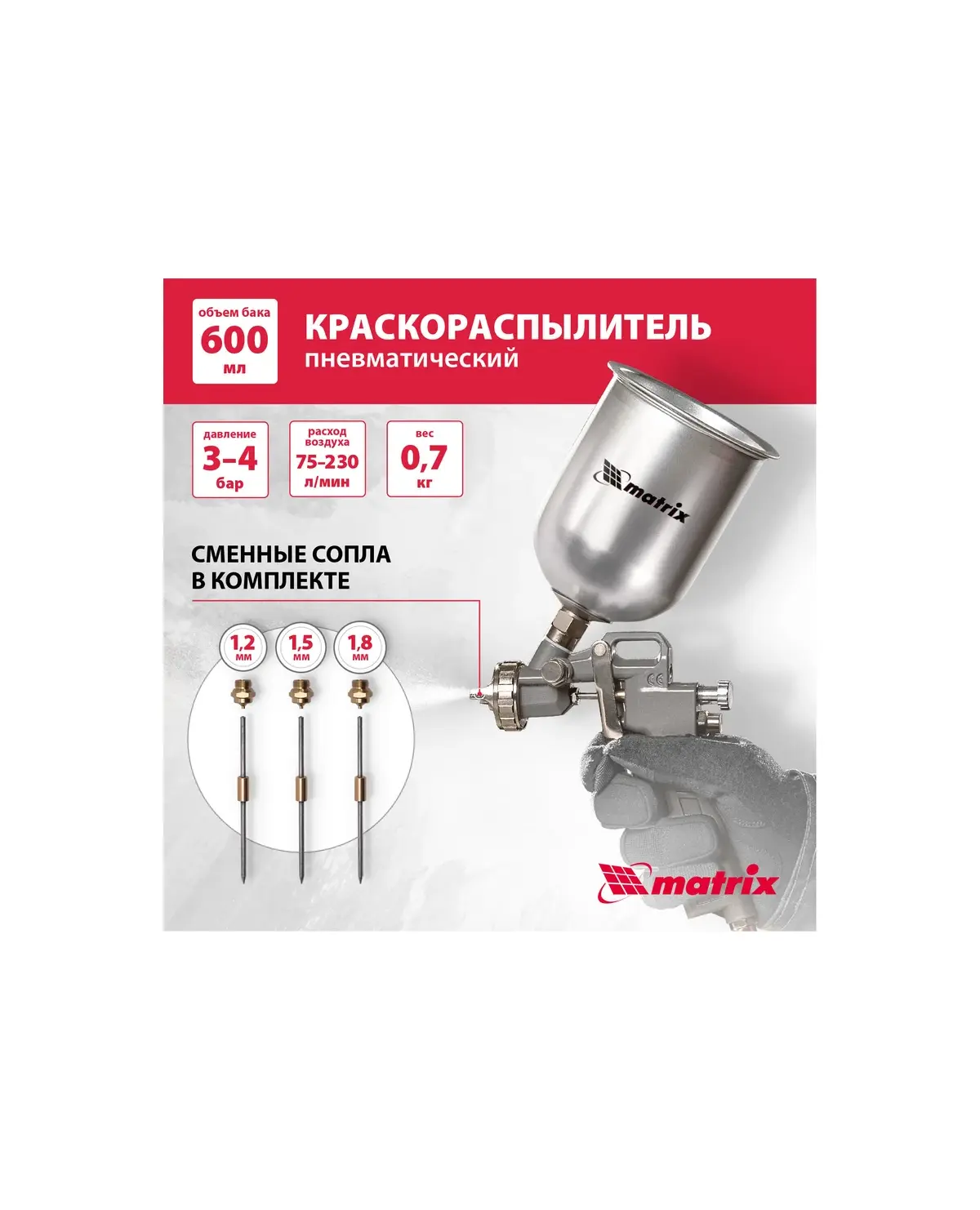 Краскораспылитель пневм. MATRIX верхний бачок 0.6л +сопла d=1.2/1.5/1.8 (57314ми)