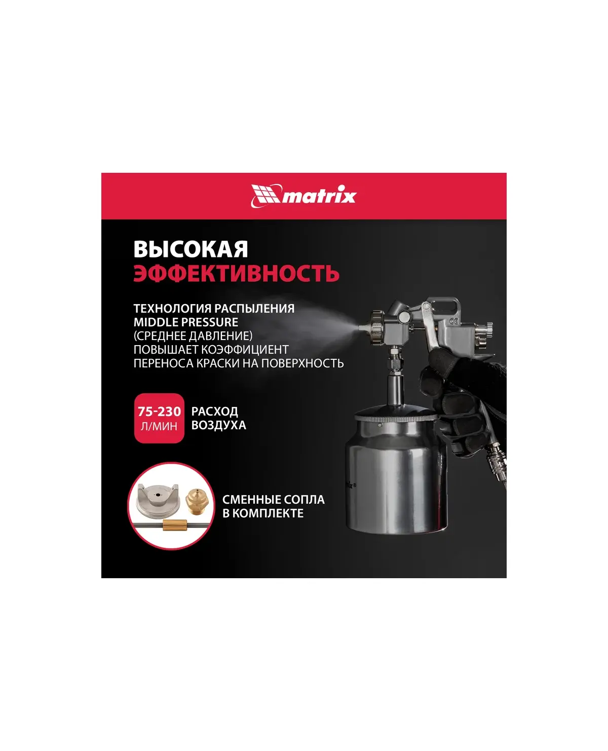 Краскораспылитель пневмат. Matrix с нижним бачком V=0,75 л, сопла диаметром 1.2, 1.5 и 1.8 мм