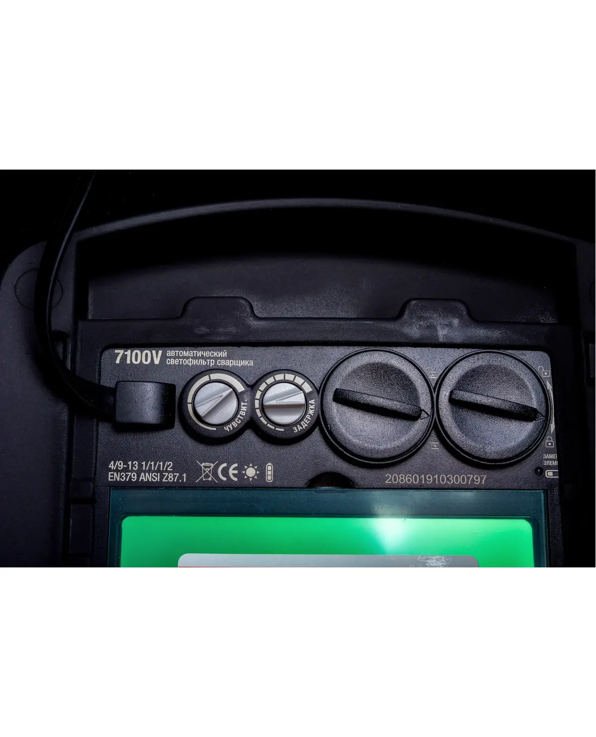 Маска сварщика FOXWELD КОРУНД-2 Фокс (5191) с автоматическим светофильтром защищает от уф-излучений. Плавная регулировка затемнения – от 9 до 13 DIN (соответствует по ГОСТ затемнению С3-С8) позволяет в зависимости от типа сварки/резки, величины тока, внешней освещенности точно установить комфортное затемнение для глаз. Регулировка затемнения вынесена на левую сторону маски. Регулировка чувствительности (высокая/низкая) позволяет настраивать наиболее подходящее срабатывание светофильтра в зависимости от типа сварки, условий внешнего освещения, степени остаточного свечения сварного шва после сварки Как правило, по умолчанию выставляется высокая чувствительность, чтобы светофильтр срабатывал не только от дуги, но даже от яркого свечения металла. Время срабатывания не превышает 000004 с!
