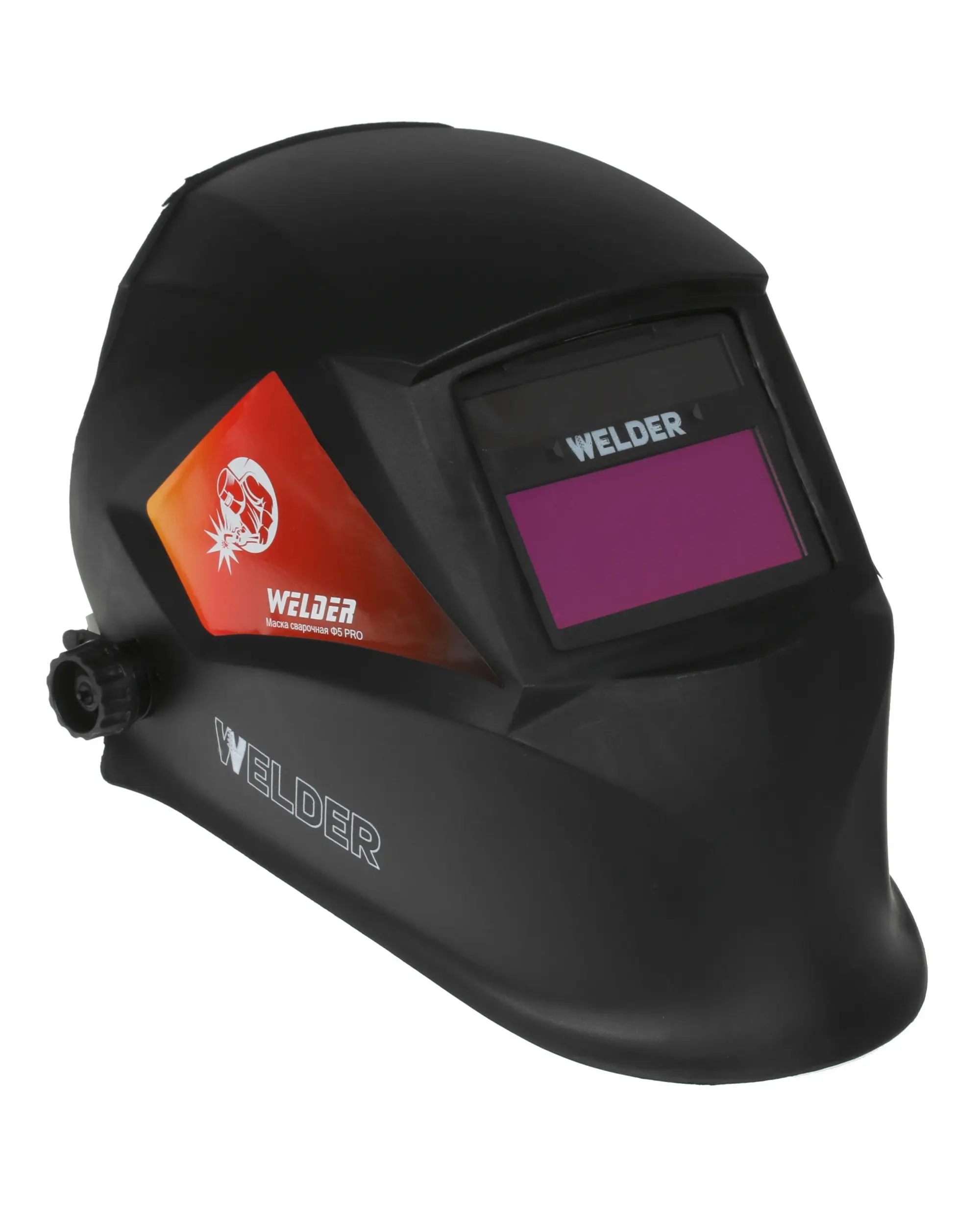 Маска сварщика WELDER PRO Ф5 СБ, "Хамелеон" 93х43мм DIN 4/9-13 (WDP-Ф5-СБ-K) полностью закрывает лицо и голову, защищает глаза, кожу и волосы от попадания искр и окалины. Обтекаемая форма и мягкая накладка для лба обеспечат комфорт, не мешая важной работе. Вы можете легко настроить удобное положение оголовья.