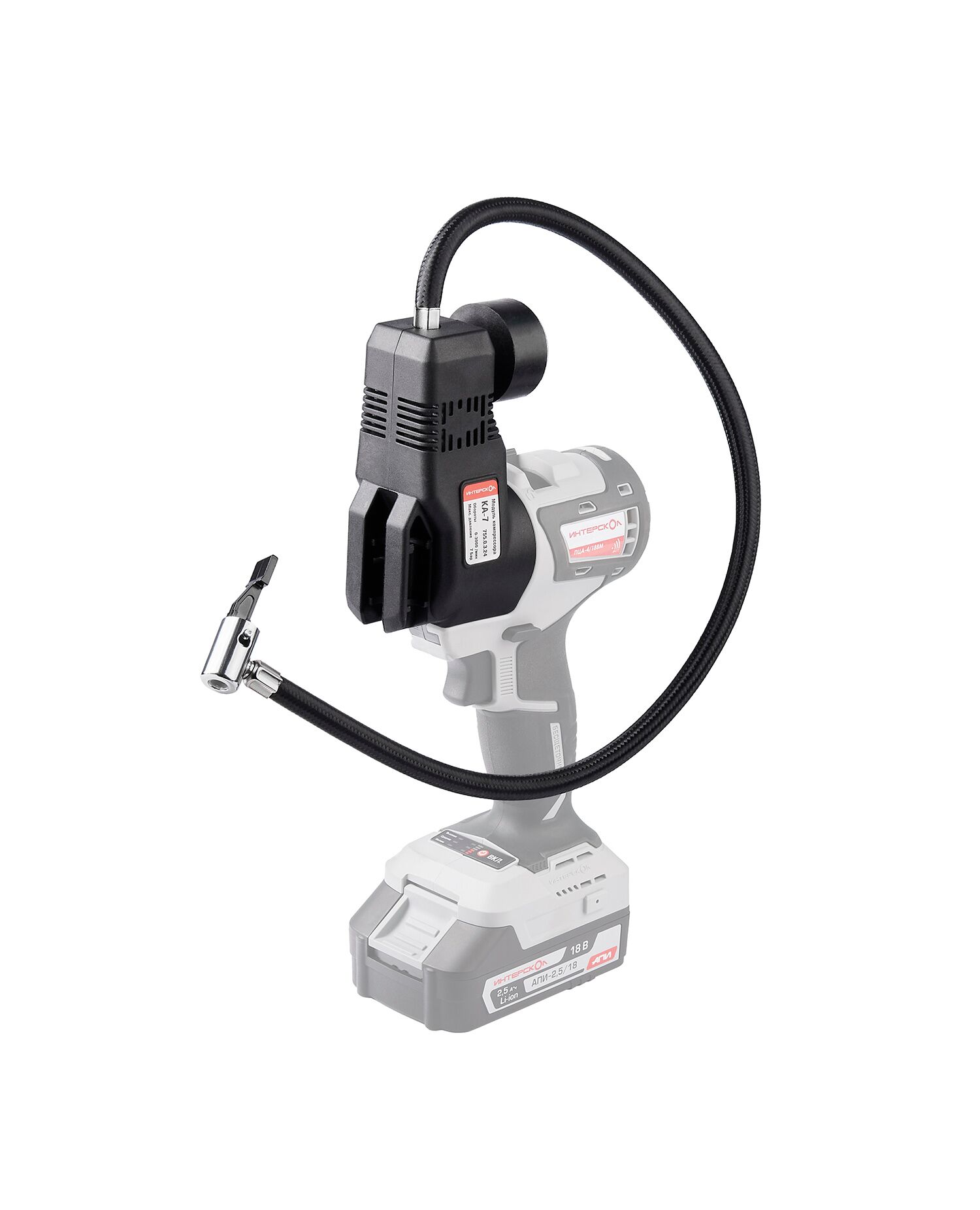 Модуль ИНТЕРСКОЛ КА-7 компрессор предназначен для накачивания шин: автомобильных, мотоциклетных, велосипедных и др., а также мячей, надувных матрасов, бассейнов и т.п. Во избежание перекачки предусмотрена возможность предустановки максимального давления, при достижении которого аппарат автоматически отключается. Автомобильный компрессор ИНТЕРСКОЛ КА-7 совместим с аккумуляторными платформами АПИ 18 В, АПИ МАКС 18 В, АПИ 18/36 В, АПИ МАКС 18/36 В. Имеет компактные размеры и малый вес. Снабжен встроенным аналоговым манометром и быстросъемным наконечником. В комплекте идут три сменные насадки.