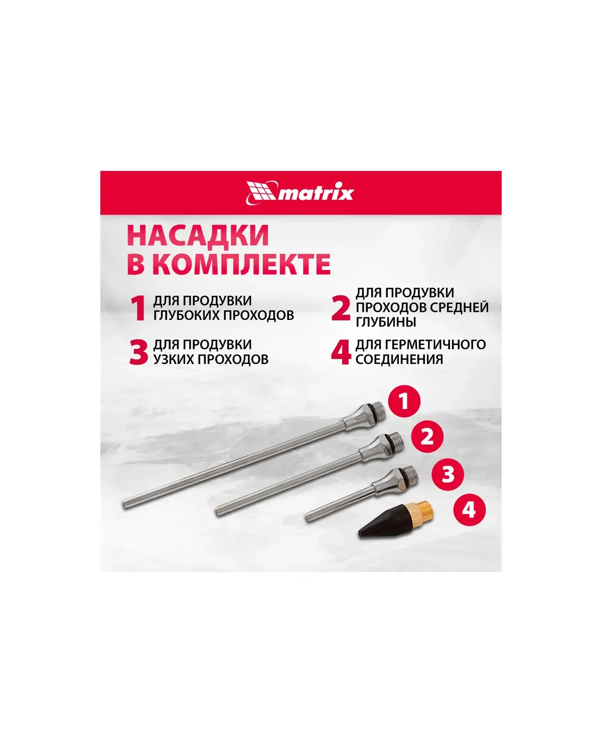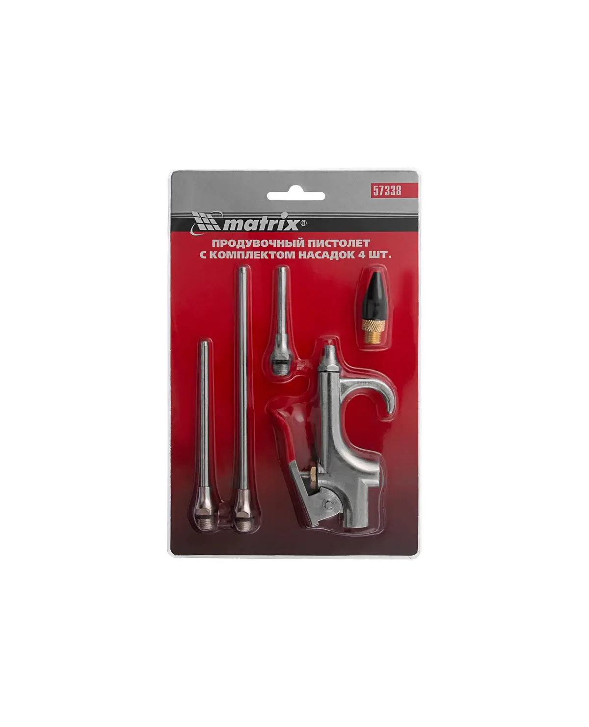 Набор Matrix, продувочный пистолет, пневмат. в комплекте с насадками, 4 шт.