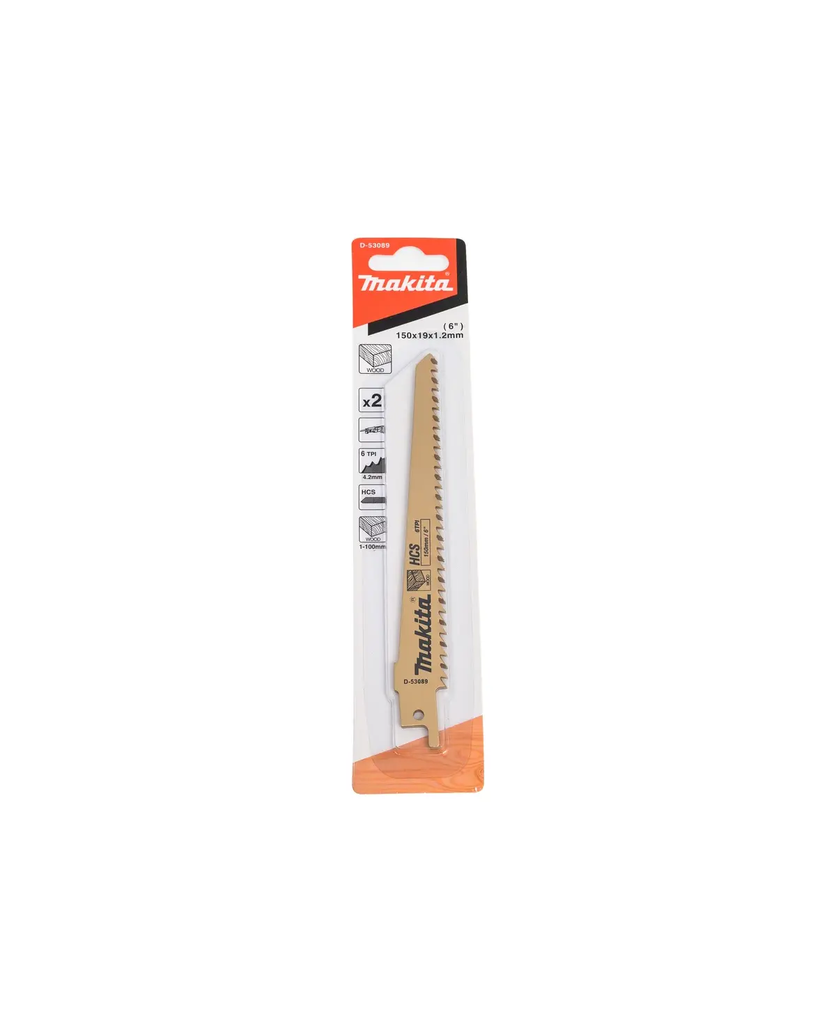 Пилки для сабельных пил MAKITA 150x1,2x6TPI (D-53089) изготовлены из стали HCS и предназначены для работы по дереву. В упаковке 2 штуки.