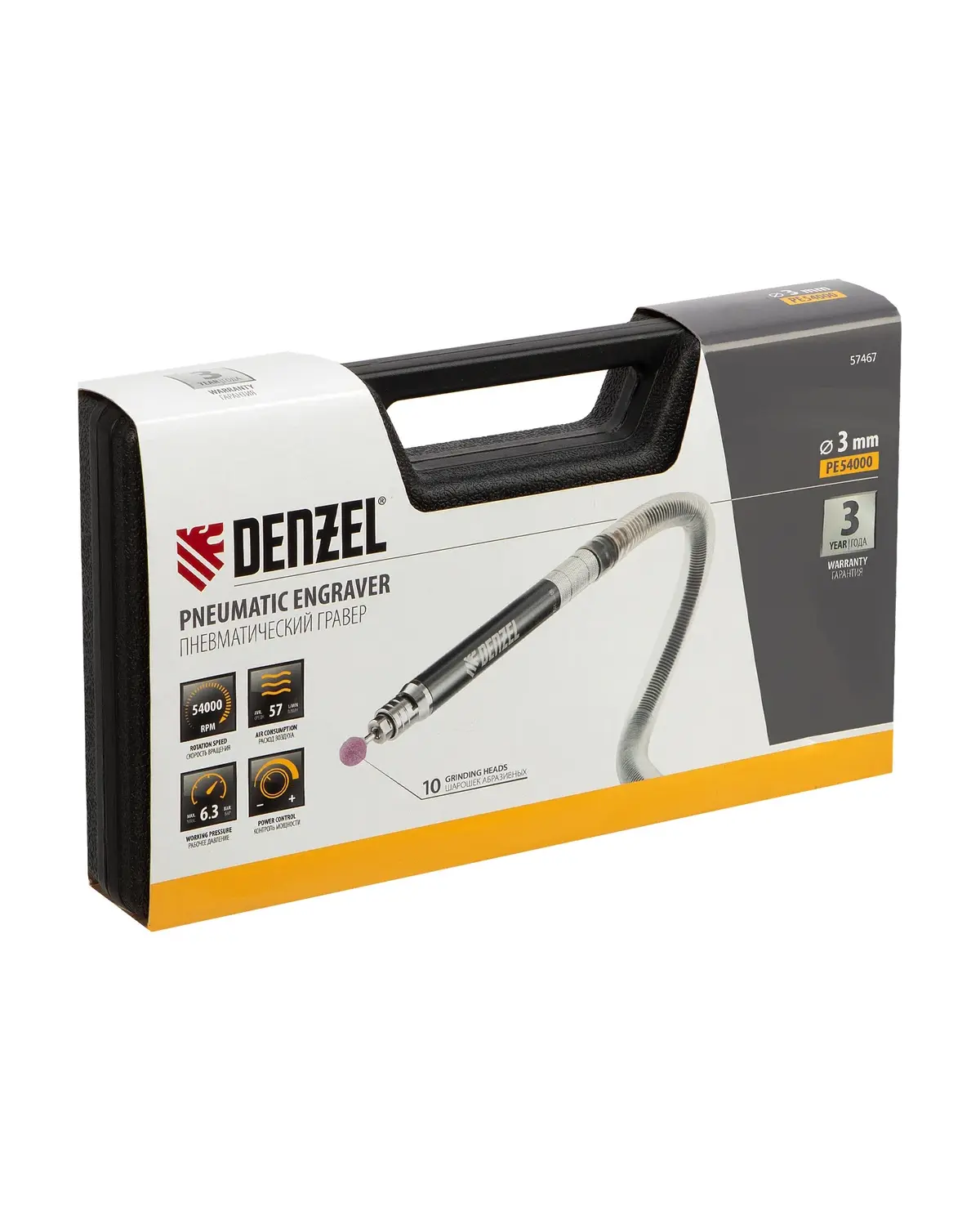 Пневматический гравер Denzel PE54000, 54000 об/мин, 3 мм, 57 л/мин