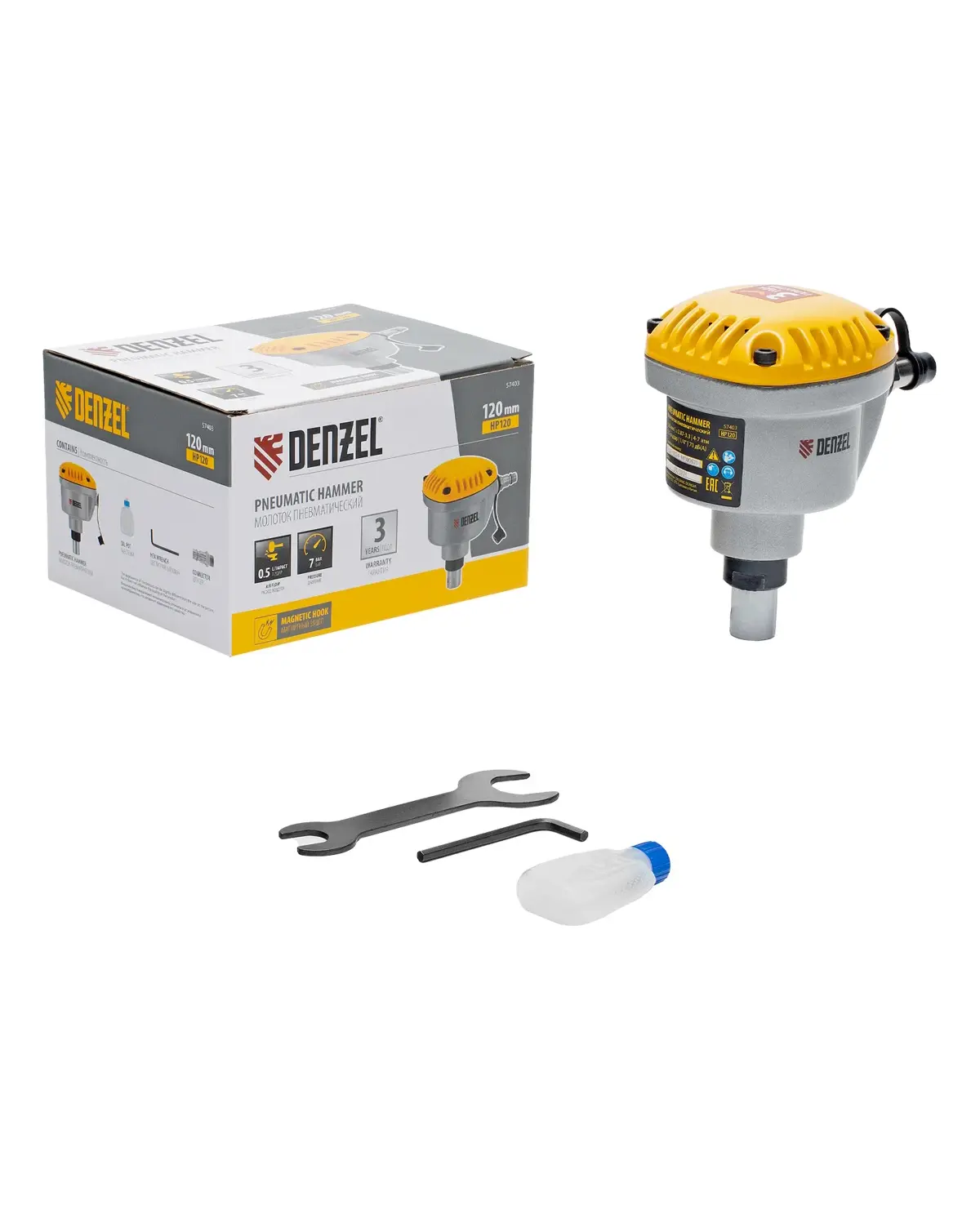 Пневмомолоток Denzel HP120 используется для выполнения строительно-ремонтных работ, идеален для профессионального применения. Имеет малый вес 0,7 кг — удобен для работы в труднодоступных местах, длительная работа не вызывает ощущение усталости. Быстросъемное соединение «рапид» позволяет подключать инструмент к компрессору всего за несколько секунд. В комплект поставки входит масленка, а также шестигранный и рожковый ключи.