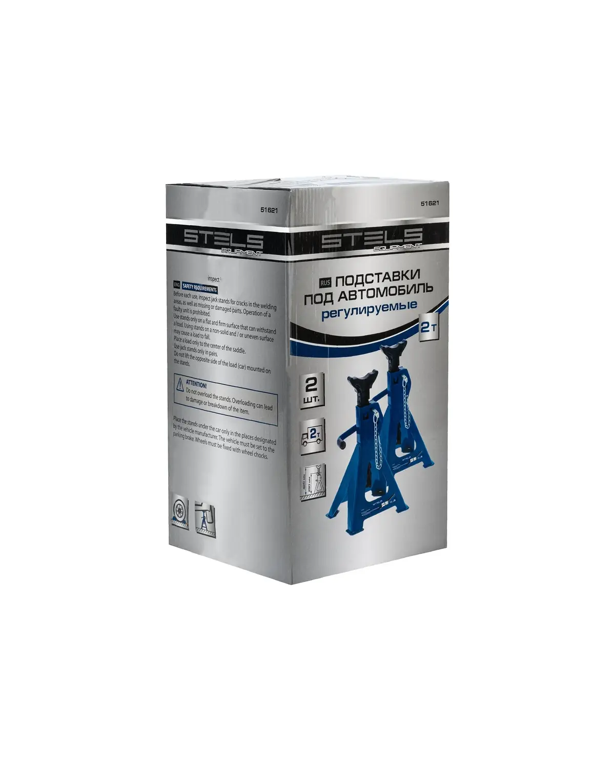 Регулировка высоты подъема подставки STELS осуществляется при помощи стальной ручки. Мощная конструкция корпуса обеспечивает безопасность при использовании подставки, за счет изготовления из прочных материалов, в расчет предела прочности которых заложены очень высокие нагрузки. Наличие площадок на нижних опорах обеспечивает улучшенную устойчивость подставки для автомобиля. Также это препятствует вдавливанию в напольное покрытие даже при высоких нагрузках. Поставляется в комплекте из 2 шт.