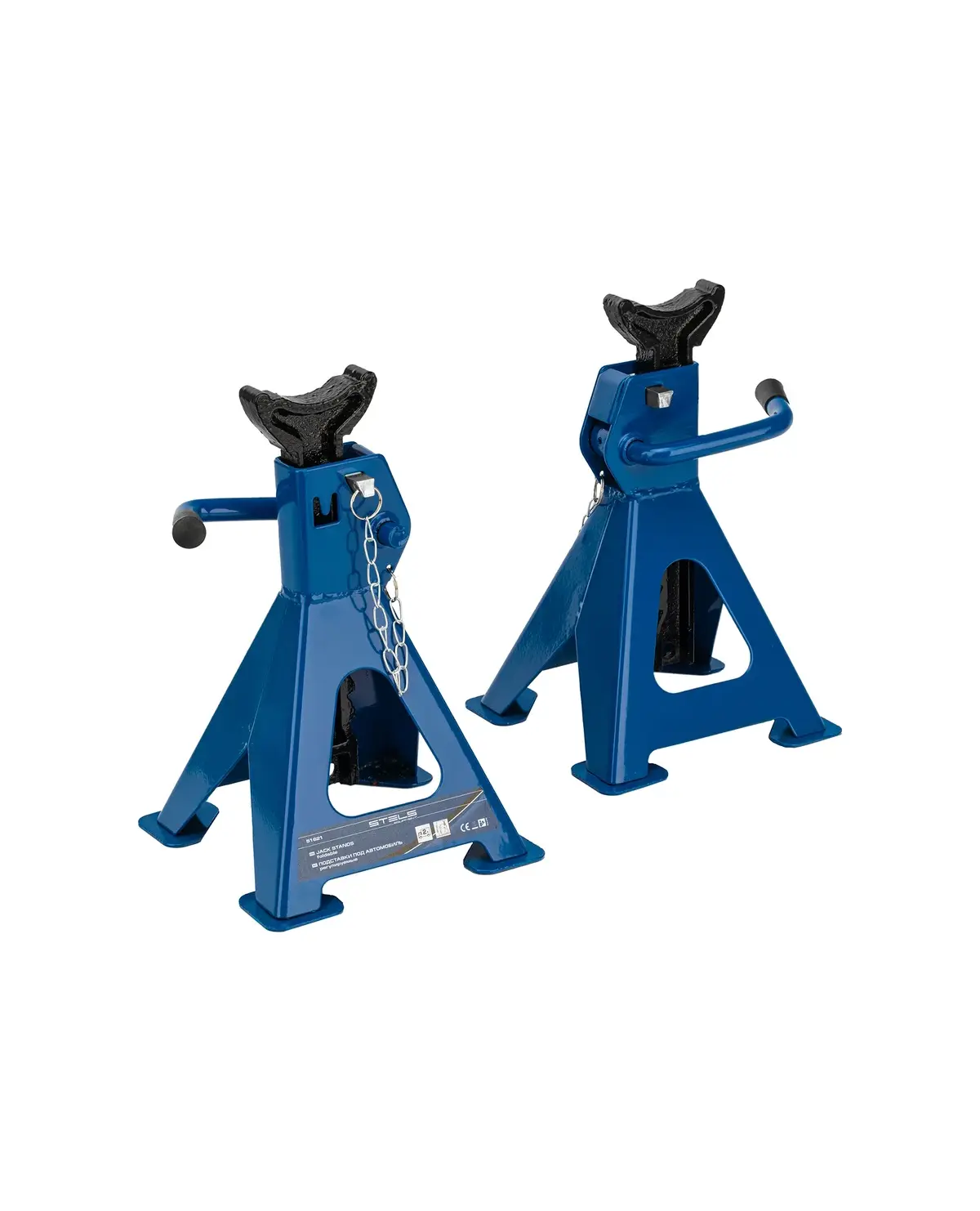 Подставки STELS 2 т. под автомобиль регулируемые (51621) предназначены для надежной фиксации и страховки автомобиля от падения при проведении шиномонтажных и ремонтных работ. Изделия используются как автолюбителями, так и профессионалами на СТО и в шиномонтажных мастерских. Конструкция модели позволяет удерживать тяжелый груз в течение длительного времени. Зубчатый механизм фиксации штока обеспечивает удобство использования и надежность фиксации. Страхующий штифт обеспечивает дополнительный прирост надежности и позволяет получить устройство двойной фиксации. Самофиксирующийся механизм обеспечивает автоматическую фиксацию автомобиля на нужной высоте.