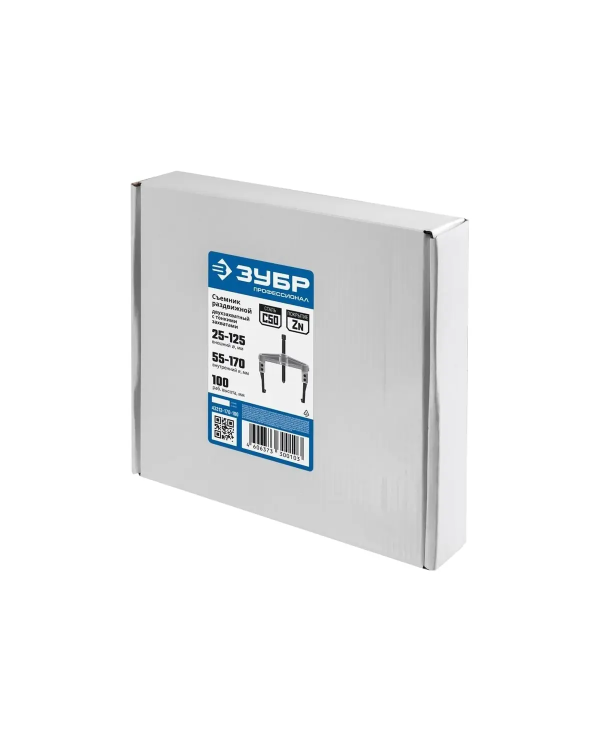 Съемник ЗУБР раздвижной двухзахватный «ПРОФЕССИОНАЛ», внешний d25-125 мм, внутренний 55-170 мм, с тонкими захватами, (43313-170-100)