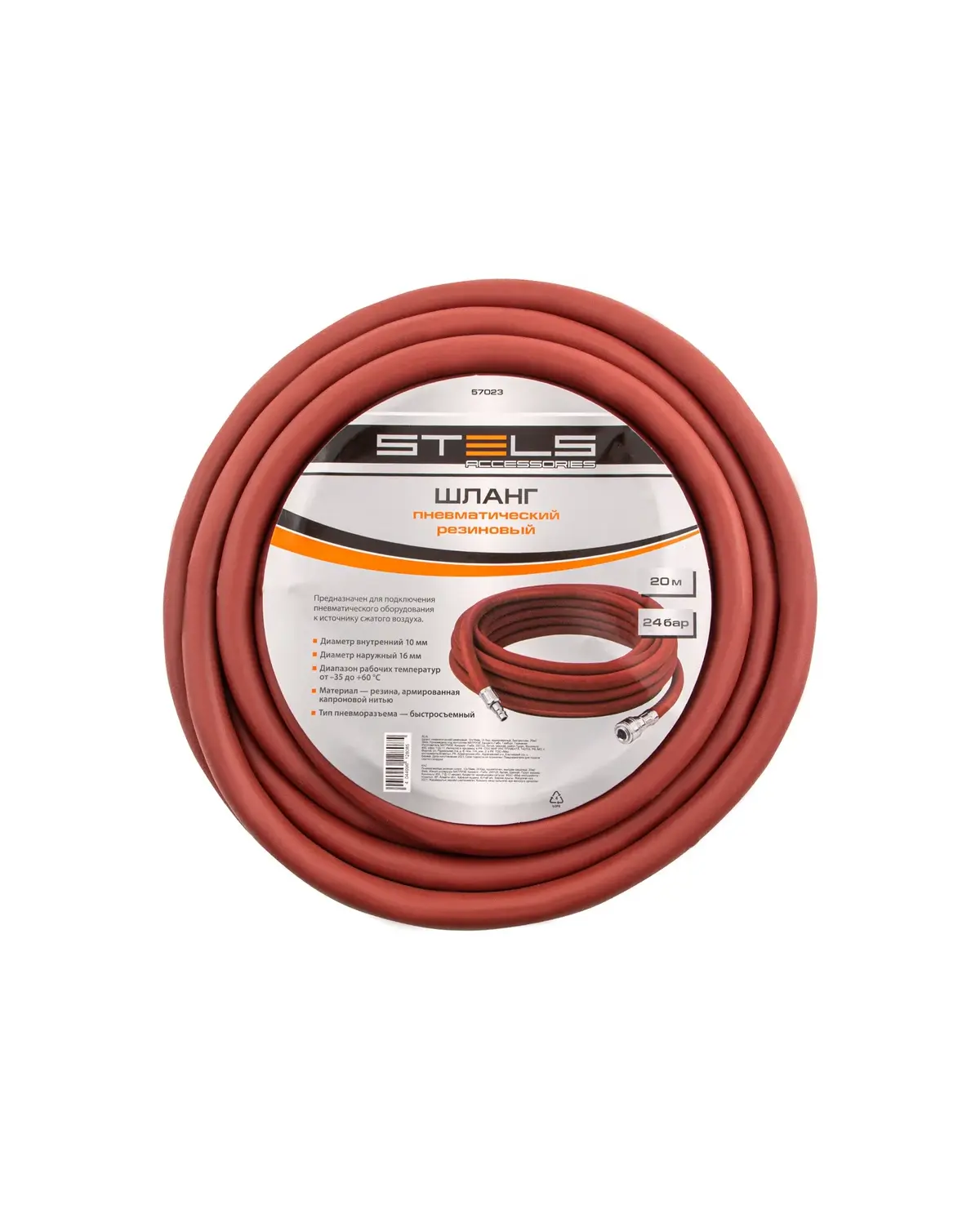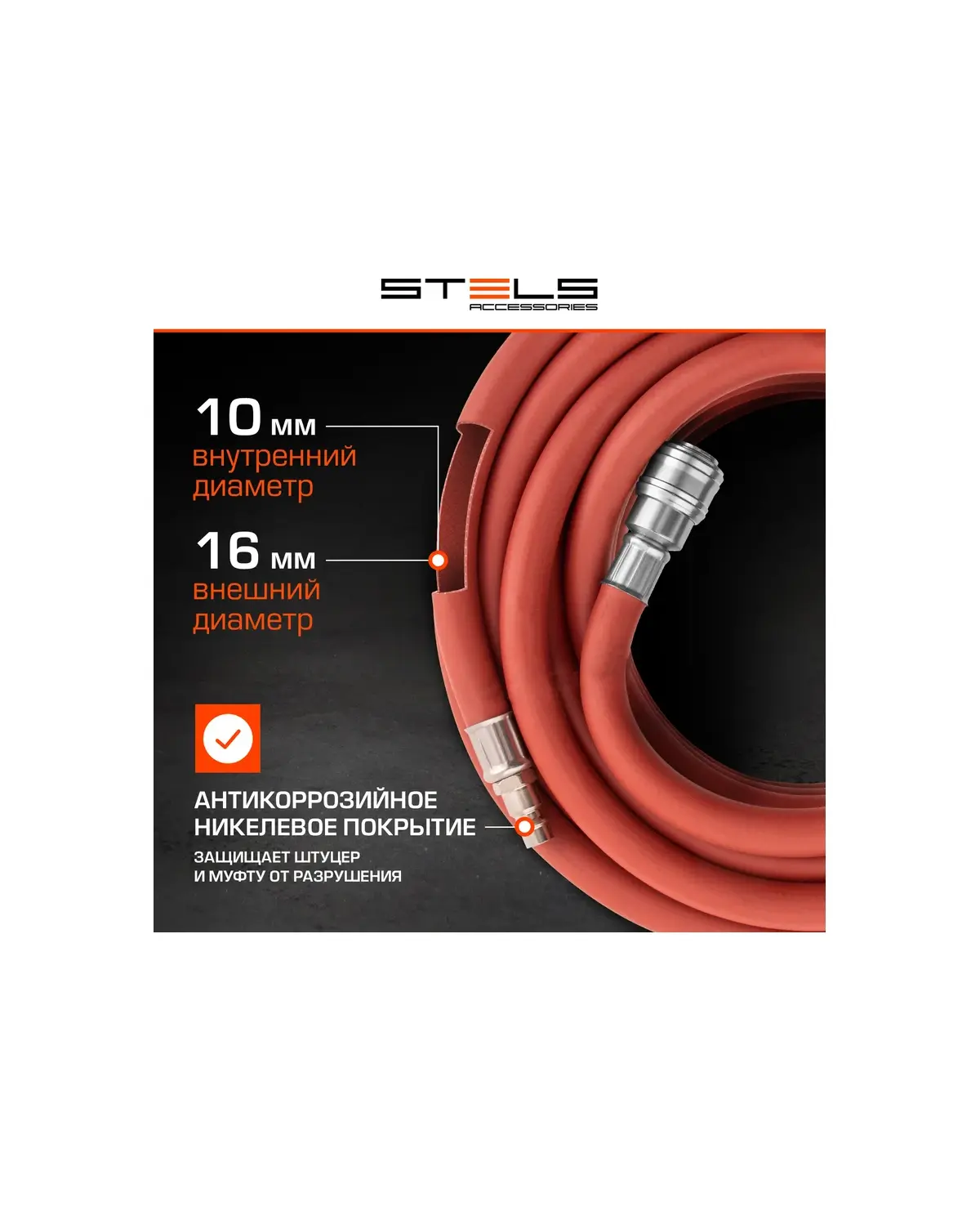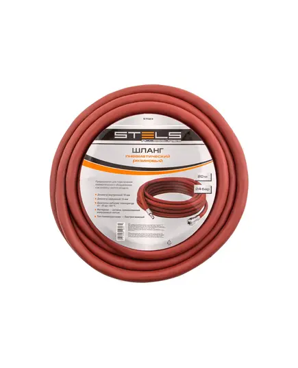 Шланг воздушный резиновый STELS 24 бар, 10х16 мм, 20 м, быстросъемы