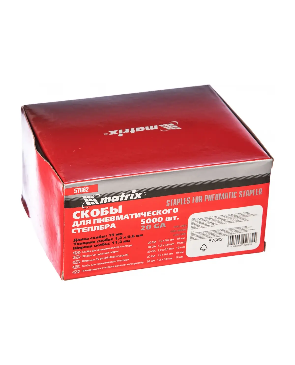Скобы MATRIX 20GA для пневматического степлера, длина 19 мм, 5000 шт