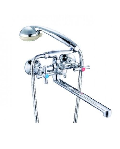 Смеситель ZEGOR DFR7-B722 для ванны с плоским пов изл, кер (1/2) 180°, изготовлен из сплава методом литья под давлением с последующим хромированием. Имеет усиленное шаровое переключение и керамические кран-буксы (1/2) с поворотом 180°. L-излив поворотный на 360°. Устанавливается на стену при помощи эксцентриков с декоративными отражателями. В комплект входят смеситель с эксцентрики с отражателями, душевая лейка, держатель для лейки и шланг в металлической оплетке 1500 мм.