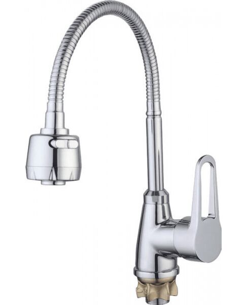 Смеситель ZEGOR SOP4-E045 для кух. мойки, материал корпуса цинк, с пов. гибким изливом 360°, картридж ⌀35, хром, крепление гайка (корона)