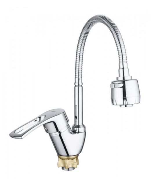 Смеситель ZEGOR YUB4-E181 с гибким изливом применяется для кухонной мойки. Изготовлен из качественного сплава цинка по технологии литья под давлением. Это обеспечивает равномерную толщину стенок смесителя, сводит к минимуму риск образования внутренней коррозии. Керамический картридж 40 мм обеспечивает точную настройку температуры и напора воды. Гофрированный гибкий излив с поворотом на 360 градусов. Двухфункциональная насадка из пластика из пластика с функцией легкой очистки и переключателем душ/обычная струя. Монтаж: на мойку, на 1 отверстие. В комплекте: стандартные гибкие подводки 1/2″ — 40см, крепление «корона».