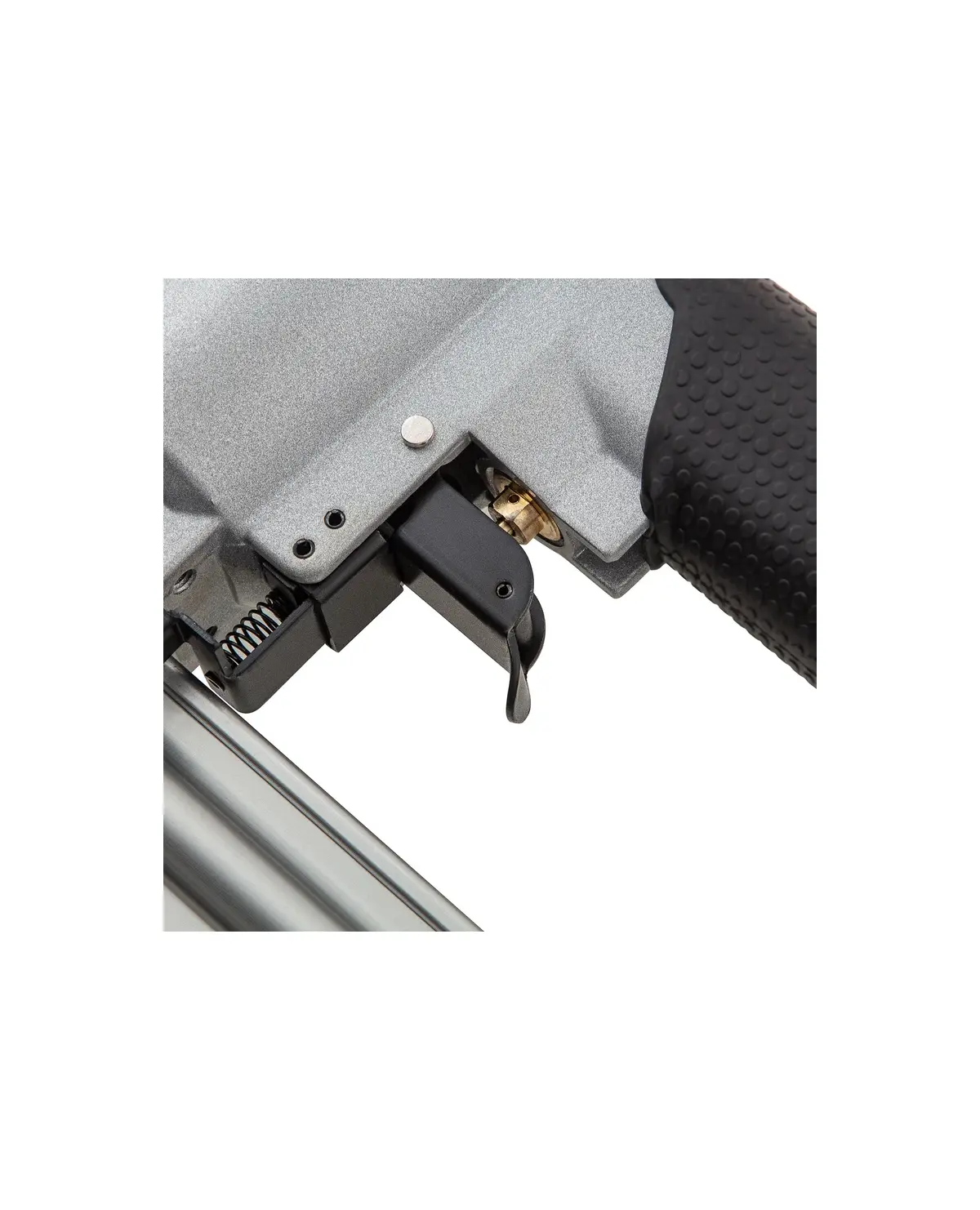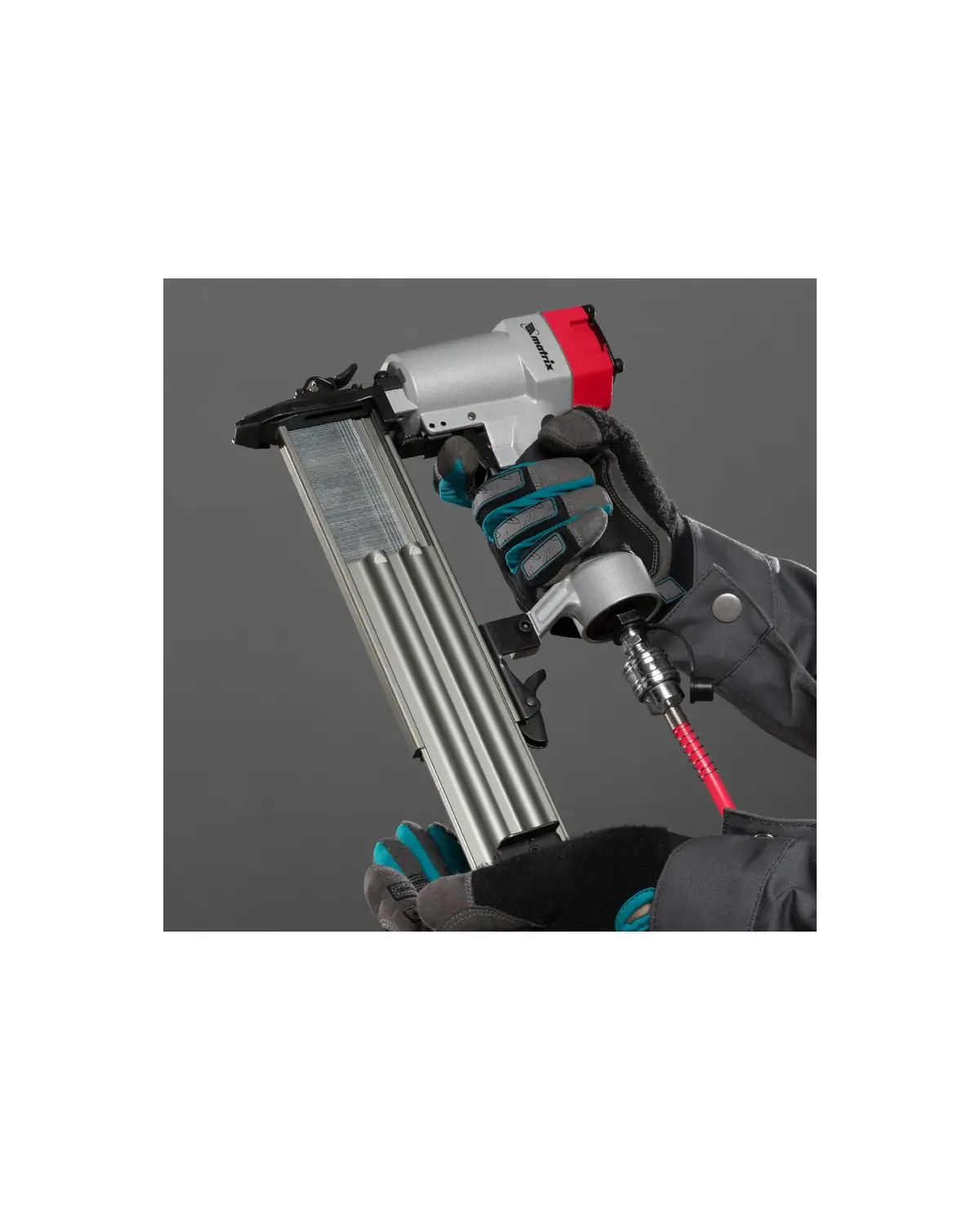 Нейлер MATRIX 57410 работает с гвоздями длиной 10-50 мм. Емкость магазина составляет 100 штук, что позволяет сэкономить время на зарядку инструмента. Рукоять удобной формы с нескользящим покрытием позволяет надежно удерживать устройство без проскальзывания руки. Малый вес, всего 1,4 кг, позволяет работать длительное время без усталости.