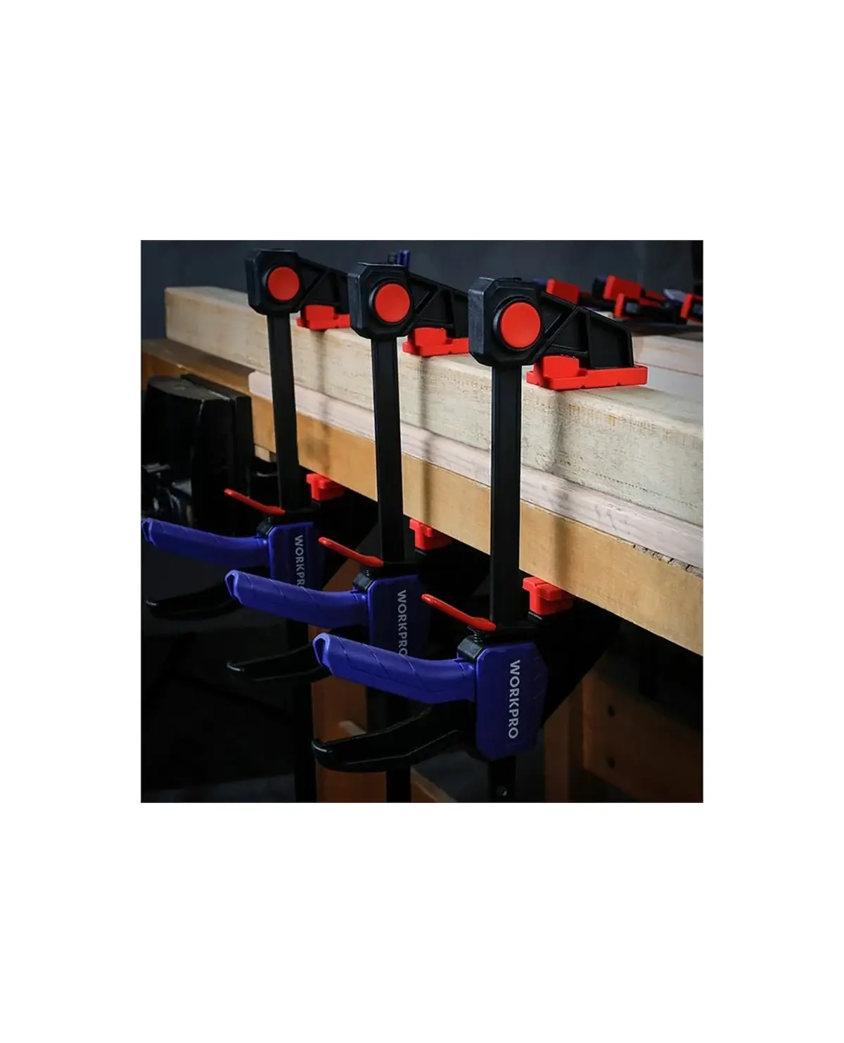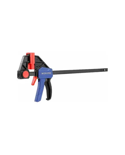 Струбцина WORKPRO быстрозажимная/распорная 300 мм, Пластиковые накладки на губках для защиты заготовки, усиленная нейлоновая конструкция