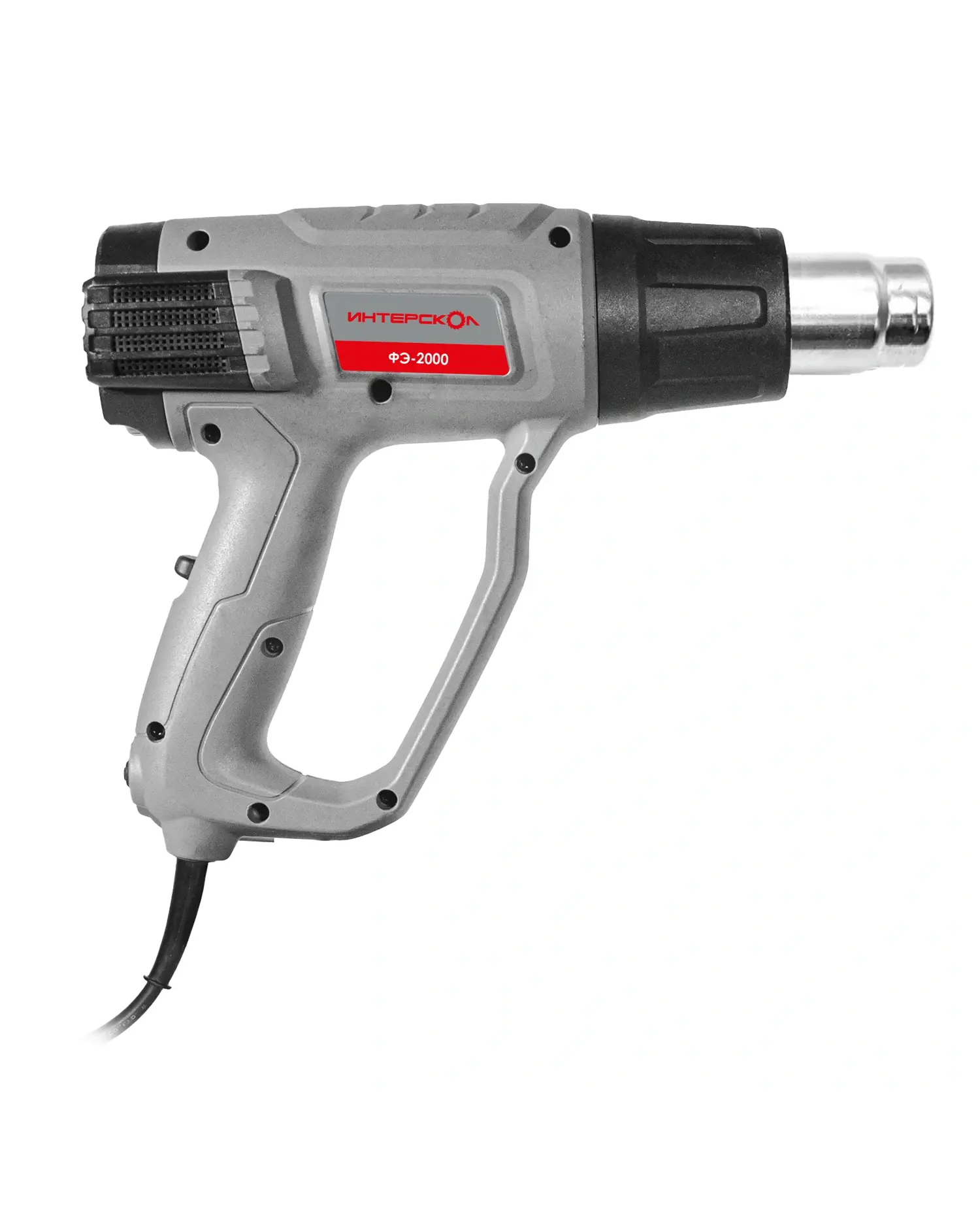 Термопистолет ИНТЕРСКОЛ ФЭ-2000 ПРОМО предназначен для обработки горячим воздухом поверхностей и материалов, для разогрева машин и механизмов, термического обеззараживания различных изделий, пайки и сварки пластиков, напольных покрытий, для операций, связанных с тонировкой стекол, и прочих задач. Предусмотрены два температурных режима с нагревом потока выходящего из сопла воздуха до 400°С и до 600°С, при этом его расход (выдуваемый объем) регулируется от 300 до 500 литров в минуту.