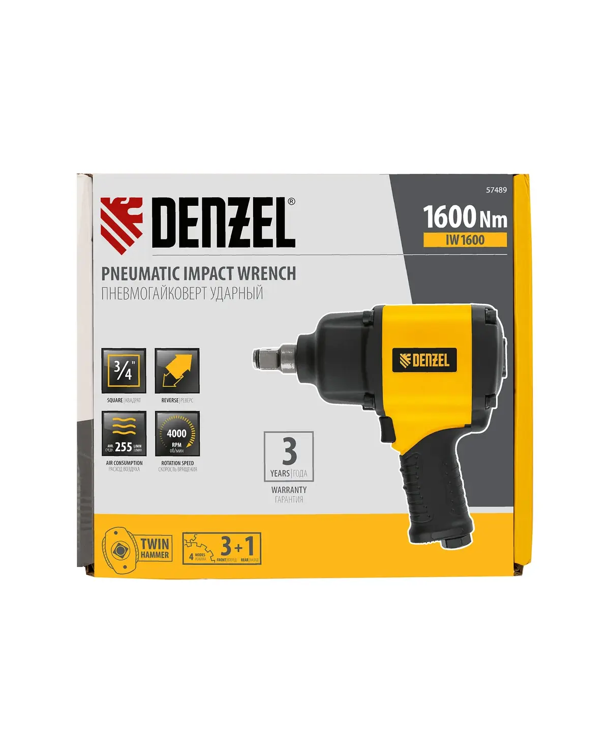 Ударный пневмогайковерт Denzel IW1600, 3/4", 4000 об/мин, 1600 Нм