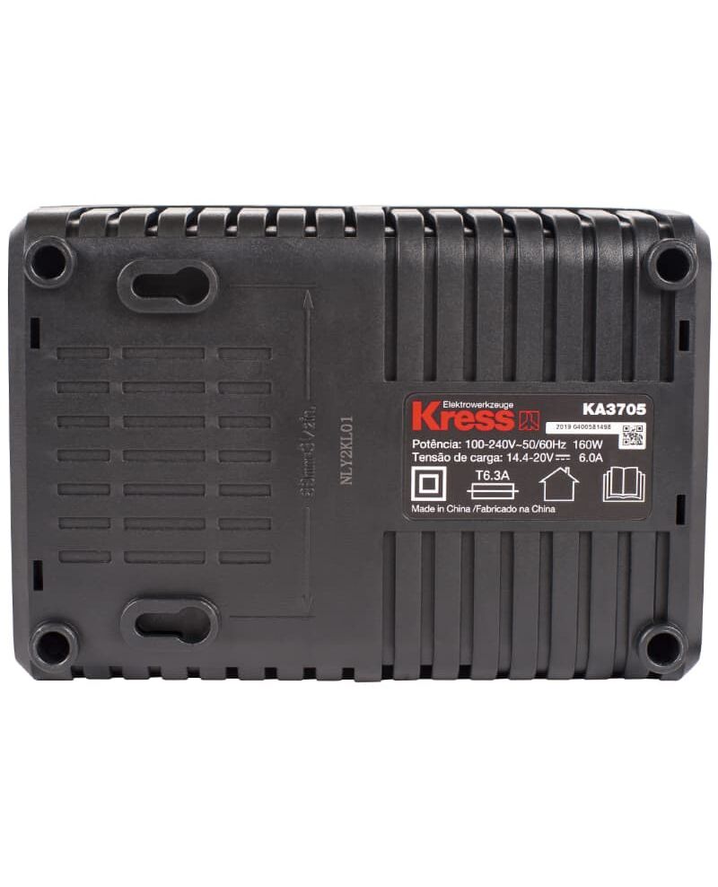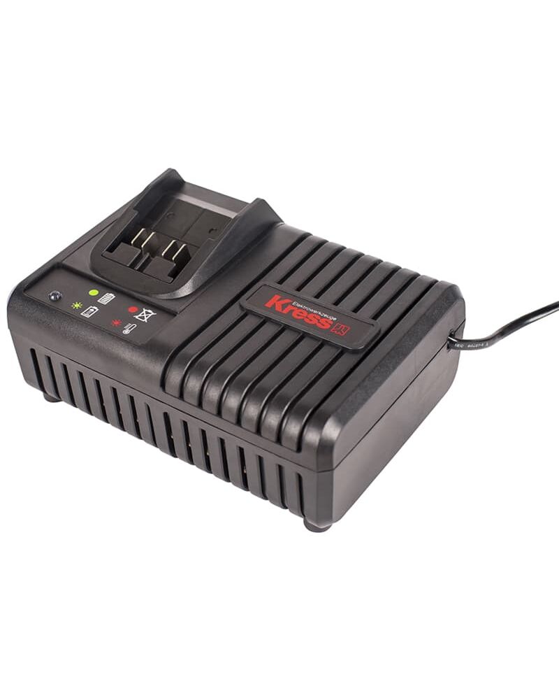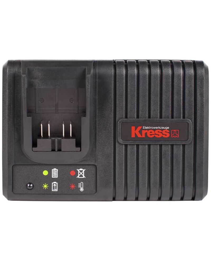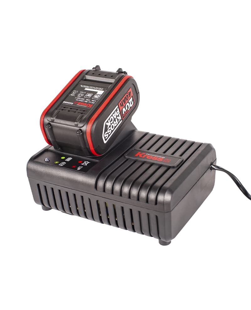 Зарядное устройство KRESS KA3705, 20V, 6A — предназначено для зарядки аккумуляторных батарей KRESS с напряжением 20 Вольт. Совместим с литий-ионными батареями KRESS 20 В. Устройство заряжает батареи 2 Ач за 25 мин и 4 Ач за 45 мин. Питание зарядного устройства осуществляется от сети 100-240 В переменного тока 50-60 Гц. Выходной ток заряда — 6А. Для защиты аккумуляторов от перезаряда и перегрева в зарядное устройство встроен специальный защитный чип. На корпусе зарядного устройства расположен индикатор зарядки батареи, по которому можно отслеживать общий уровень заряда. Также на корпусе предусмотрены специальные места для крепления на стену.